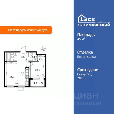 Прямая продажа от застройщика! Жилой Комплекс класса Комфорт. Продаётся 2-к квартира номер 219 общей площадью 43.1 кв.м. на 2-м этаже 17 этажного здания. Чистовая отделка. Цена с учётом скидки. Особенности квартиры: - Организуем показ в удобное для вас время! - Мастер-зона с гардеробной. Просторное место для отдыха и удобного хранения вещей. - Линейная планировка - максимальная функциональность и удобство. - Раздельный санузел - больше удобства для всех членов семьи. - Евроформат - просторное и удобное жилье с отличной планировкой. - Линейная кухня - функциональность и практичность в одном решении. - Гардеробная - удобство для хранения и организации вещей. - Ниша под шкаф - компактное и удобное место для вещей. - Тёплая лоджия - пространство для отдыха в любое время года. Квартира с чистовой отделкой. Раскройте свою индивидуальность в создании своего уникального проекта, а трудоемкий ремонт мы возьмем на себя! Вы идете в ногу со временем и предпочитаете современные, универсальные дизайнерские решения? Или вы любитель строгой лаконичной классики? Тогда наши интерьеры придутся вам по душе! Выбирайте то, что ближе лично Вам и реализуйте свои задумки вместе с нами! Информация о комплексе: "1-й Химкинский": гармония современного города и природы на 102 га у Химкинского леса и канала им. Москвы. Развитая инфраструктура: ТЦ, школы, спорткомплекс с термами и СПА, парк развлечений. Идеальный баланс для жизни в окружении зелени и городского комфорта. Транспортная доступность: ЖК "1-й Химкинский" дает возможность выбрать любой способ передвижения как до города, так и до самых разных объектов, которые могут представлять интерес для его жителей. Не важно, какой способ передвижения вы предпочитаете, успевать всегда и везде можно вне зависимости от выбора транспорта. - 8 мин. пешком (800 м) до остановки "Золотая Арка" -10 мин пешком (1 км) до остановки "Поворот на Ивакино" Внутренняя инфраструктура: Безопасность: закрытые дворы без машин, безбарьерная среда, сквозные подъезды, камеры на детских площадках с трансляцией на смартфон. Отдых: семейный парк развлечений, двухэтажный ТЦ 8 000 м² с фудкортом. Образование: 4 детских сада, 2 муниципальные школы. Спорт: закольцованный веломаршрут, спорткомплекс с термами, тренажерный зал, воркаут зоны. Инфраструктура: поликлиника со станцией скорой помощи, пожарное депо. Паркинг: подземный паркинг, кладовые на -1 этаже, СТО и автомойка на территории. Квартира с чистовой отделкой: ваш стиль без ремонта. Выбирайте современный дизайн или классику - мы воплотим ваши идеи. Готовые интерьеры для уникального дома.