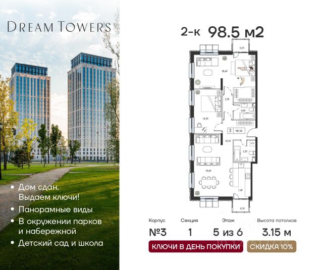 Увеличенный объем панорамного остекления создает неповторимое ощущения воздушности пространства! Двор-набережная с видами на гладь реки и кроны деревьев. Премиальный квартал DREAM RIVA — авторская архитектура в курортной концепции, воплощающей силу природных стихий в каждой детали оформления и благоустройства. Продаётся Квартира с 1 спальней квартира на 15 этаже 26-этажного дома (3 корпус). Общая площадь: 46.4 кв.м. Высота потолков от 3 м. Формат приватного досуга и эксклюзивные привилегии в DREAM RIVA с приоритетным доступом для резидентов: - Первая линия Москвы-реки с открытыми видами на воду и город; - 3 Га приватного прибрежного парка с зонами для спорта и йоги; - Открытый солярий; - Школа и собственный детский сад; - Многофункциональные детские игровые площадки и детское кафе с игровой комнатой; - Клубная гостиная и lounge-бар. Локация вне конкуренции — инфраструктура полуострова предлагает всё, что нужно для размеренной жизни, работы, отдыха и развлечений: - Благоустроенная набережная с гастрогалереей; - Парк аттракционов Остров Мечты (в торговой части: рестораны, кафе, супермаркет, магазины, салон красоты, йога-студия и многое другое); - 44 Га ландшафтных парков для прогулок, спорта, пикников; - Пляжный комплекс Dream Beach Club со множеством бассейнов, ресторанов, баров и развлечений для любого возраста; - Яхт-клуб; - Вейк-парк; - Кинотеатр под открытым небом и многое другое. Удобная транспортная доступность: - Центр рядом: 15 минут до Садового кольца на авто, 20 минут до Сити или Кремля; - В 5 минутах прогулочным шагом — станция метро "Технопарк"; - Южный речной вокзал. Наши менеджеры будут рады провести для Вас консультацию и подробнее рассказать о проекте. Успейте купить на лучших условиях! Продается 2-комнатная квартира в новостройке рядом с метро Технопарк.
