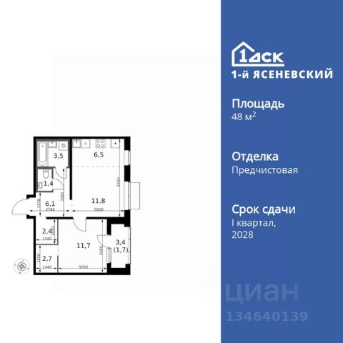Прямая продажа от застройщика! Жилой Комплекс класса Комфорт Плюс. Продаётся 2-к квартира номер 297 общей площадью 47.9 кв.м. на 15-м этаже 18 этажного здания. Предчистовая отделка. Цена с учётом скидки. Особенности квартиры: - Квартиры рядом с метро - м. Корниловская 9 мин пешком - 63 га лесопарка за окнами - Школа c ИТ-кластером и бассейном. 2 детских сада - Организуем показ в удобное для вас время! - Мастер-зона с гардеробной. Просторное место для отдыха и удобного хранения вещей. - Линейная планировка - максимальная функциональность и удобство. - Увеличенное количество окон - дополнительное освещение и свежий воздух. - Раздельный санузел - больше удобства для всех членов семьи. - Евроформат - просторное и удобное жилье с отличной планировкой. - Просторная мягкая зона - комфорт и уют для отдыха всей семьи. - Возможность добавить спальное место - дополнительный комфорт для гостей. - Проходная кухня-гостиная - идеальное пространство для общения и готовки. - Гардеробная - удобство для хранения и организации вещей. - Лоджия - уютное место для отдыха и тишины. Квартира с предчистовой отделкой. Вам не придется заниматься черновыми и трудоёмкими работы, а чистовую отделку и дизайн - сделайте на свой вкус. Информация о комплексе: ЖК "1-й Ясеневский": преимущества городской инфраструктуры и природы. Пешая доступность к метро, школе с бассейном и ИТ-кластеру, а также 63 га Троицкого лесопарка под окнами. Закрытая территория с бульварами, велодорожками, кафе и дворами без машин. Фруктовые деревья и городские сады создают уникальную атмосферу. Всего в 1 км от МКАД - идеальный баланс для современной жизни. Транспортная доступность: До метро "Корниловская" - 12 минут пешком До метро "Тютчевская" - 25 минут пешком До метро "Теплый стан" - 10 минут на транспорте До метро "Ольховая" - 30 минут на общественном транспорте Личный автотранспорт: Выезд на Калужское шоссе - 500 м МКАД - 1 км Внутренняя инфраструктура: ЖК "1-й Ясеневский" - идеальное место для семей с детьми. Рядом Троицкий лесопарк для прогулок, а во дворах - современные детские площадки, разработанные с участием психологов. В шаговой доступности два детских сада и школа на 1100 мест с ИТ-кластером, бассейном и классами робототехники. Всё для счастливого детства и успешного будущего. Квартира с предчистовой отделкой - ваш дизайн без черновых работ