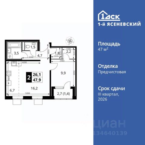 Прямая продажа от застройщика! Жилой Комплекс класса Комфорт Плюс. Продаётся 2-к квартира номер 308 общей площадью 47.9 кв.м. на 16-м этаже 18 этажного здания. Отделка Whitebox. Цена с учётом скидки. Особенности квартиры: - Квартиры рядом с метро - м. Корниловская 9 мин пешком - 63 га лесопарка за окнами - Школа c it-кластером и бассейном. 2 детских сада - Мастер-зона с гардеробной. Просторное место для отдыха и удобного хранения вещей. - Линейная планировка - максимальная функциональность и удобство. - Увеличенное количество окон - дополнительное освещение и свежий воздух. - Раздельный санузел - больше удобства для всех членов семьи. - Евроформат - просторное и удобное жилье с отличной планировкой. - Просторная мягкая зона - комфорт и уют для отдыха всей семьи. - Возможность добавить спальное место - дополнительный комфорт для гостей. - Проходная кухня-гостиная - идеальное пространство для общения и готовки. - Гардеробная - удобство для хранения и организации вещей. - Лоджия - уютное место для отдыха и тишины. Квартира с предчистовой отделкой (White box). Вам не придется заниматься черновыми и трудоёмкими работы, а чистовую отделку и дизайн - сделайте на свой вкус. Информация о комплексе: В жилом комплексе комфорт-плюс класса "1-го Ясеневского" доступны преимущества двух стилей жизни. Ведь в пешей доступности метро, школа с 25-метровым бассейном и IT-кластером и при этом целых 63 га благоустроенного Троицкого лесопарка под окнами, где так приятно дышать свежим воздухом и слушать пение птиц. Собственная закрытая территория "1-го Ясеневского" представляет собой уютный оазис. Здесь и зеленый освещенный бульвар для прогулок, система велодорожек, маленькая городская площадь, кафе, пекарни и кофе поинты. А еще дворы без машин и многоэтажная парковка. Изюминка территории - фруктовые деревья во дворах и городские сады. "1-й Ясеневский" - всего в 1 км от МКАД, на территории новой Москвы. Жилой комплекс, где есть все необходимое для современного человека. Транспортная доступность: До метро "Корниловская" - 12 минут пешком До метро "Тютчевская" - 25 минут пешком До метро "Теплый стан" - 10 минут на транспорте До метро "Ольховая" - 30 минут на общественном транспорте Личный автотранспорт: Выезд на Калужское шоссе - 500 м МКАД - 1 км Внутренняя инфраструктура: ЖК "1-й Ясеневский" можно назвать идеальным местом для жизни семьи с детьми. Здесь буквально за домом находится Троицкий лесопарк - излюбленное место прогулок молодых родителей. А во внутренних дворах под детские площадки выделены специальные зоны. Они оборудованы всем, что нужно для счастливого детства: современными и максимально безопасными качелями, песочницами и лазалками. Оборудование и игровые сценарии на детских площадках спроектированы вместе с командой детских психологов для правильного развития ребенка и для повышения их интереса. Также рядом с домом два детских садика, один из которых уже построен и школа на 1100 мест. Школу по праву можно н Продам 2-комнатную квартиру в новостройке рядом с метро Теплый Стан.