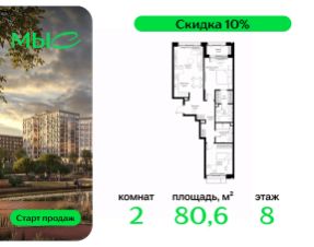 Прямая продажа от застройщика. Продаётся 2-комнатная квартира общей площадью 66.02 м² без отделки в премиальном жилом комплексе "МЫС" на 10-м этаже 12 этажного дома. Квартира расположена в корпусе "Сибирь". Проект МЫС — это, прежде всего, идеальное место для семей. В рамках проекта построят государственную школу, два детских сада и дворец спорта площадью 20 000 м2 с термальным комплексом, выплывным бассейном, фитнес-залом, теннисными, сквош и падел кортами и секциями для детей. На территории площадью, сравнимой с тремя парками Зарядье, появятся кафе и рестораны, пруд с набережной, спортивные и детские площадки, скейт-парк, лыжные и веломаршруты. Расположение: - 2 минуты до скоростной трассы М1 и Минского шоссе; - 10 минут до МКАД; - 15 минут до МЦД Лесной Городок - 20 минут до делового центра "Москва-Сити"; - 28 минут до аэропорта "Внуково". Благоустройство: - велосипедные и лыжные маршруты; - собственная набережная и парк; - лаунж-зоны в окружении природы; - беседки у очага; - дворец спорта площадью 20 000 м²; - термальный комплекс с тремя бассейнами; - 4 теннисных и падел-корта; - 6 сквош-кортов; - многофункциональный спортзал; - скейт-парк; - просторная площадь для прогулок с фонтаном; - детский клуб с творческими секциями; - гастро-доминанта; - кафе у пруда, рестораны, ритейл. Окружение - соседство с лесным фондом; - школа на 1250 мест и 2 детских сада на 350 и 255 мест; - Дубковский и Подушкинский леса, парк "Рассказовка", Мещерский парк. Действуют специальные условия при 100% оплате, подробности уточняйте у менеджера в офисе продаж.