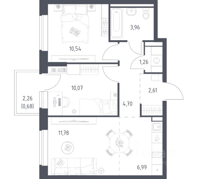 В продаже 2-комнатная квартира в корпусе 3.3 ЖК 'Егорово Парк'. Квартира располагается на 7 этаже, общая площадь 55.59 м2.