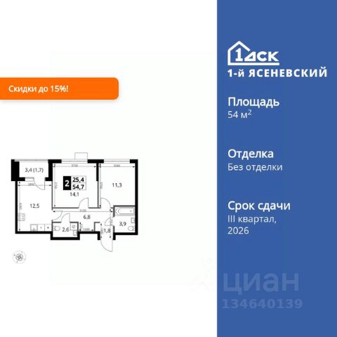 Прямая продажа от застройщика! Жилой Комплекс класса Комфорт Плюс. Продаётся 2-к квартира номер 679 общей площадью 54.7 кв.м. на 10-м этаже 16 этажного здания. Без отделки. Цена с учётом скидки. Особенности квартиры: - Квартиры рядом с метро - м. Корниловская 9 мин пешком - 63 га лесопарка за окнами - Школа c it-кластером и бассейном. 2 детских сада - Просторная спальня, в которой можно разместить большую кровать. - Линейная планировка - максимальная функциональность и удобство. - Гостевой санузел - комфорт и удобство для ваших гостей. - Ниша под шкаф - компактное и удобное место для вещей. - Лоджия - уютное место для отдыха и тишины. Информация о комплексе: В жилом комплексе комфорт-плюс класса "1-го Ясеневского" доступны преимущества двух стилей жизни. Ведь в пешей доступности метро, школа с 25-метровым бассейном и IT-кластером и при этом целых 63 га благоустроенного Троицкого лесопарка под окнами, где так приятно дышать свежим воздухом и слушать пение птиц. Собственная закрытая территория "1-го Ясеневского" представляет собой уютный оазис. Здесь и зеленый освещенный бульвар для прогулок, система велодорожек, маленькая городская площадь, кафе, пекарни и кофе поинты. А еще дворы без машин и многоэтажная парковка. Изюминка территории - фруктовые деревья во дворах и городские сады. "1-й Ясеневский" - всего в 1 км от МКАД, на территории новой Москвы. Жилой комплекс, где есть все необходимое для современного человека. Транспортная доступность: До метро "Корниловская" - 12 минут пешком До метро "Тютчевская" - 25 минут пешком До метро "Теплый стан" - 10 минут на транспорте До метро "Ольховая" - 30 минут на общественном транспорте Личный автотранспорт: Выезд на Калужское шоссе - 500 м МКАД - 1 км Внутренняя инфраструктура: ЖК "1-й Ясеневский" можно назвать идеальным местом для жизни семьи с детьми. Здесь буквально за домом находится Троицкий лесопарк - излюбленное место прогулок молодых родителей. А во внутренних дворах под детские площадки выделены специальные зоны. Они оборудованы всем, что нужно для счастливого детства: современными и максимально безопасными качелями, песочницами и лазалками. Оборудование и игровые сценарии на детских площадках спроектированы вместе с командой детских психологов для правильного развития ребенка и для повышения их интереса. Также рядом с домом два детских садика, один из которых уже построен и школа на 1100 мест. Школу по праву можно назвать образцовым учебным заведением. В ней закладываются основы успешного будущего. Здесь есть класс робототехники, IT-кластер, 25-метровый бассейн и прекрасно оборудованные спортзалы.