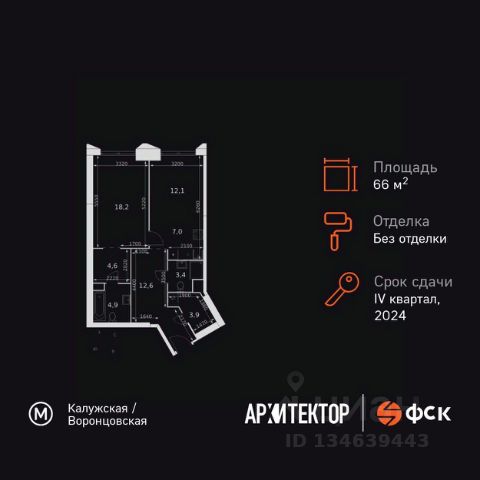 Продаётся 2-к квартира номер 296 общей площадью 72 кв.м. на 18-м этаже 46 этажного здания. Предчистовая отделка. Цена с учётом скидки.