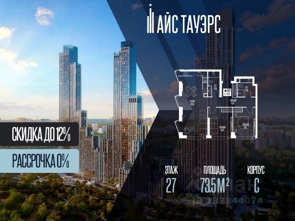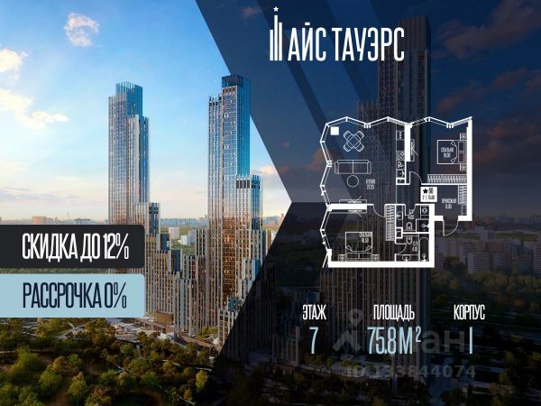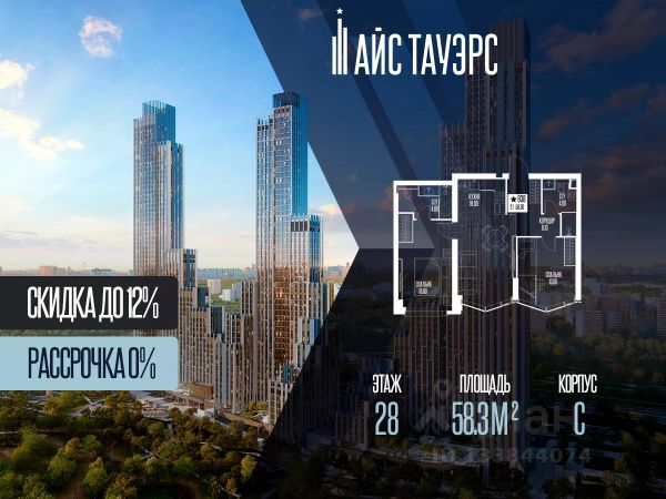 Беспроцентная рассрочка от застройщика. Выгода до 12%. Продается 2-комнатная квартира на 3 этаже, 59 кв.м. площади в жилом комплексе "Айс Тауэрс", который расположен в Западном административном округе Москвы. Архитектура комплекса отличается панорамным остеклением фасадов. Квартиры продаются с опциональной предчистовой отделкой. В комплексе установлены системы видеонаблюдения, климат-контроля и элементы системы "умный дом". Территория и расположение На придомовой закрытой территории обустроены детские площадки, спортивные площадки и места для отдыха. Комплекс граничит с особо охраняемой природной зоной, что обеспечивает доступ к прогулочным маршрутам. Инфраструктура комплекса • Общественное пространство с универсальными залами, коворкингом и библиотекой. • Помещения для детских занятий и мастер-классов. • Предусмотрены кабинеты для приема специалистов (стилистов, массажистов). В комплексе работают круглосуточная консьерж-служба и служба доставки (внутри комплекса). Доступны услуги парковки и помощи с багажом. Для повседневного удобства предусмотрены: • Колясочные и велосипедные хранилища. • Душевые для домашних животных и груминг. • Мобильное приложение для управления сервисами.