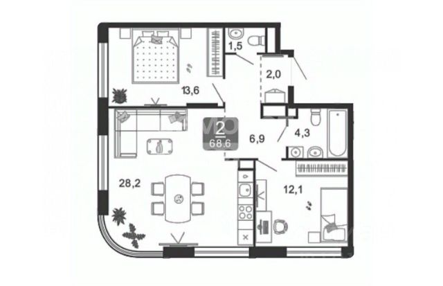 Евро-планировка ПРОСТОРНОЙ квартиры в КЛУБНОМ ДОМЕ ПРЕМИУМ класса. Две станции МЕТРО в 15 мин ходьбы. ВИД НА Москву-РЕКУ