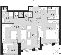Продаётся 2-комнатная квартира 1, площадью 42,90 м², на 3 этаже в ЖК "Beluck Коломенское" корпус 1. Стоимость — от 21701053 руб. Квартира с отделкой, планировка односторонняя.