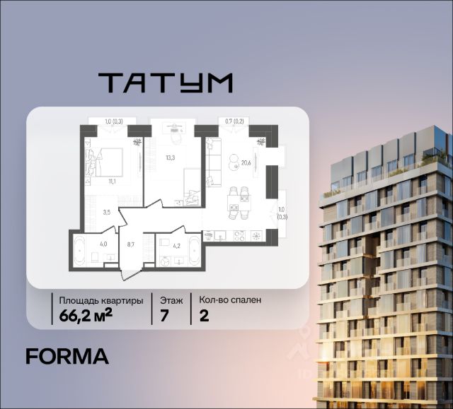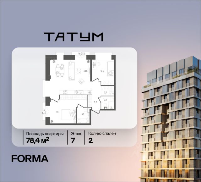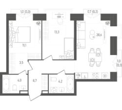2-комн. квартира в ЖК "Ever" на 4 этаже в 34 этажном здании Корпус 5. Общая площадь: 55.4 кв.м., жилая: 29.5 кв.м. Высота потолков 3.00 м.