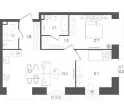 2-комн. квартира в ЖК "Ever" на 4 этаже в 34 этажном здании Корпус 5. Общая площадь: 55.4 кв.м., жилая: 29.5 кв.м. Высота потолков 3.00 м.