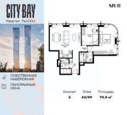 Прямая продажа от застройщика. Продаётся 2-к квартира общей площадью 61.80 м² без отделки в ЖК City Вау, квартале Pacific, на 8-м этаже 59 этажного дома. Концепция жилого комплекса City Вау - настоящий город в городе с отлично развитой инфраструктурой и собственной благоустроенной набережной. На территории жилого комплекса расположено пять кварталов - Atlantic, Pacific, Indian, North, Cliff. Жилой квартал City Вау отличается оригинальной концепцией и выделяется среди других проектов такими характеристиками как: - Архитектура, - Виды из окон, - Природное окружение, вызывая гордость у жителей и восхищение у прохожих. Вся жизнь района Покровское-Стрешнево строится вокруг водных объектов: - Пойма реки Сходни с уникальной экосистемой, - Речка Химка и Химкинское водохранилище, - Москва-река, - Канал имени Москвы. Кругом вода, и местные с удовольствием этим пользуются. А сразу за рекой - центр водного спорта в Строгино с вейк-парком и яхт-клубами. Помимо воды, здесь очень много зелени: - Рядом Сходненский ковш памятник природы, естественный амфитеатр глубиной 40 метров; - Парк при усадьбе Братцево с фруктовым садом; - Дубовая роща "Маяк", - Алешкинский лес; - Лесопарк Покровское-Стрешнево с пляжами и бобрами. Главные транспортные артерии района: - Волоколамское шоссе, - Таганско-Краснопресненская линия метро и МЦД-2. Всего за 20 минут можно добраться до центра на машине или метро, а МЦД связывает ЖК City Вау с северными, восточными и юго-восточными районами. Компания MR Group предлагает своим клиентам специальные условия приобретения квартир в рамках программ ипотечного кредитования от банков-партнеров.