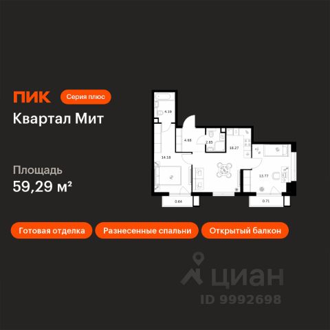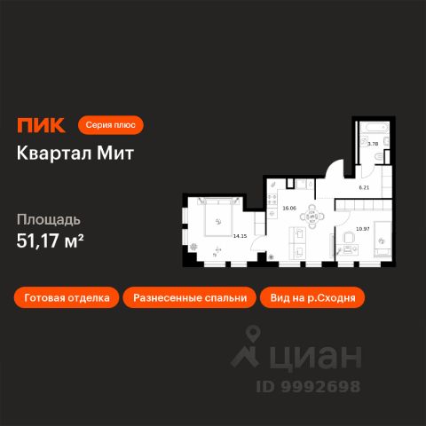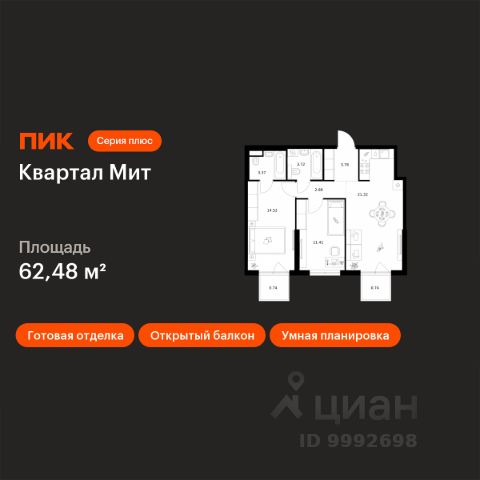 Новостройка! Продается 2-комн. кв-ра площадью 51,52 кв.м, (Корпус 3.4, Секция 4) 20 этаж 32-этажного дома в Квартал Мит от ПИК. "Квартал Мит" строится в экологически чистом районе Митино, где по соседству расположен большой лесопарк, а с двух сторон протекают реки Сходня и Журавка. Для семей с детьми здесь появится школа и два детских сада. В 20 минутах пешком находится станция метро "Пятницкое шоссе", а за 10 минут на автомобиле можно доехать до МКАД. Архитектура от бюро Slava+ Концепция квартала сочетает эстетику и функциональность. Башня-доминанта цвета красной охры и разновысотные корпуса терракотового, белого и графитового оттенков формируют узнаваемый силуэт современного городского пространства. Просторные террасы, разнообразные балконы и окна в пол придают облику динамичность и дарят квартирам уютные места для отдыха. Первые этажи с панорамными окнами создают сцену для яркой городской жизни. Здесь появятся пространства для прогулок, летние террасы, рестораны и коммерческие помещения. Комфорт "Серии плюс" При входе в дом жителей встретят светлые просторные лобби с высокими потолками — попасть сюда можно как со стороны улицы, так и со двора. В лобби будет зона ожидания, велосипедная и колясочная. Быстро и с комфортом подняться на нужный этаж помогут бесшумные скоростные лифты. На подземном этаже появится паркинг и индивидуальные кладовые, где удобно хранить сезонные вещи. #d12.12# Артикул 1034913 (Застройщик АО СЗ "ПФК")
