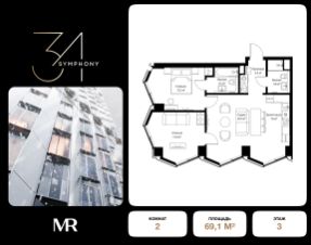 Дом сдан. Ключи в день покупки! В продаже 2-комнатная квартира площадью 59.40 м² с предчистовой отделкой на 35 этаже 43 этажного дома в корпусе Сильвер. ЖК Симфония 34 - концептуально новый жилой комплекс премиум-класса с подземной парковкой, состоит из четырех башен высотой 36 - 54 этажа. Квартиры сдаются с базовой (предчистовой) отделкой MR BASE или дизайнерской чистовой отделкой MR READY. Высота потолков 3 - 6 метров, окна высотой до 2,6 м. Более 100 кладовых в подземной части ЖК и более 500 на этажах. Безопасность - Система контроля входа на территорию комплекса, биометрия - Система автоматического водяного пожаротушения и противопожарного водопровода, система пожарной вентиляции - Доступ на парковку при помощи системы распознавания автомобильных номеров, карточка для контроля доступа резидентов - Система видеонаблюдения - Круглосуточная связь через приложение, телефон, голосовые сообщения с охраной, консьержем, call-центр. Расположение Пешком - 6 минут до метро "Дмитровская" - 15 минут до Тимирязевского парка На машине - 5 минут до Савеловского вокзала и Аэроэкспресса в Шереметьево - 10 минут до Москва-Сити и Садового кольца Благоустройство - 70% территории отведены под зеленые насаждения и ландшафтный дизайн - Приватный Японский сад - Детские площадки с зонированием по возрасту - Clubhouse для резидентов - Wellness & SPA - Зона для пикника, зона с гамаками - Центральное лобби, ресторан, коммерческие помещения - Дополнительный вход/выход на территорию комплекса Окружение - В 10 минутах от Symphony 34 находится дизайн-завод Flacon, где регулярно проходят культурно-образовательные и развлекательные мероприятия - Тимирязевский парк расположен в 850 м. Площадь парка 232 га - Рядом расположен парк "Дубки", площадью 16,5 га. - В 15 минутах расположен Хлебозавод 9. Здесь находятся шоурумы брендов, кафе разных кухонь мира, образовательные проекты и площадки для мероприятиКомпания MR предлагает своим клиентам специальные условия приобретения квартир в рамках программ ипотечного кредитования от банков-партнеров. 2-комнатная квартира в новостройке в районе Савеловский в Москве.