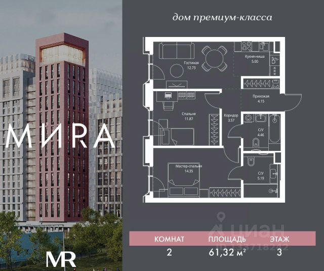 Прямая продажа от застройщика. Продаётся 2-комнатная квартира общей площадью 54.24 м² без отделки в доме премиум-класса МИRА на 5-м этаже 24 этажного дома. Квартира расположена в корпусе 3. Дом премиум-класса МИRA это: • Спокойный район с богатой историей и сложившейся инфраструктурой • Авторская архитектура на стыке классики и современности • Вход в парк прямо из жилого комплекса • Панорамные виды на Яузу, парки, ВДНХ и скульптуру "Рабочий и колхозница" • Удобные сервисы и безопасность для каждого резидента Расположение: Жилой квартал расположен в Алексеевском районе на северо-востоке Москвы, на второй линии домов, таким образом вы сможете дистанцироваться от шума и суеты проспекта Мира, но при этом будете жить недалеко от этой важной городской магистрали. Прямо у дома: • Парк Акведук • Река Яуза • Памятник "Рабочий и колхозница" Пешком: • 16 мин м. ВДНХ На автомобиле: • 12 мин ТТК • 15 мин Садовое кольцо • 12 мин Национальный парк "Лосиный остров" Благоустройство: Концепция благоустройства от бюро "ДРУЖБА" разработана в стиле "Лесная тропа". В уютном дворе расположились словно затерянные в лесу, площадки для отдыха. Они разделяются островками с травами, кустарниками, крупными камнями и деревьями, между которыми проходят узкие песчаные тропинки с деликатной подсветкой по вечерам. Центральной точкой притяжения для жителей станет главная площадь с фонтаном, которая открывается сразу из двух входных групп. Внутренний двор МИRA: • Детская площадка с зонами для игр малышей до трех лет и детей более старшего возраста • Спортивная площадка с профессиональным оборудованием для тренировок • Декоративные перголы • Воздушный арт-объект с подсветкой, похожий на облако • Чайный домик, где в отдельном отапливаемом павильоне можно в любое время года попить кофе с соседями или устроить камерное семейное чаепитие • Зоны для работы и отдыха с гамаком под навесом, скамейками и креслами Инфраструктура и окружение: В Алексеевском районе есть огромные благоустроенные парки, магазины, гимназии с высоким рейтингом и филиалы ВУЗов, частные и государственные детские сады, модные кофейни и фитнес-центры. В квартале МИRА предусмотрены: • 2 ресторана с видом на парк Акведук • 3 кафе • фитнес-студия • подземный паркинг на 330 машино-мест Компания MR предлагает своим клиентам специальные условия приобретения квартир в рамках программ ипотечного кредитования от банков-партнеров. Продается 2-комнатная квартира в новостройке станция Ботанический сад (МЦК).