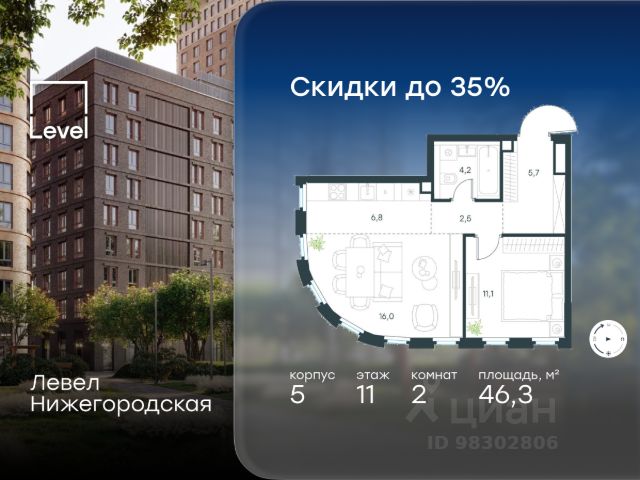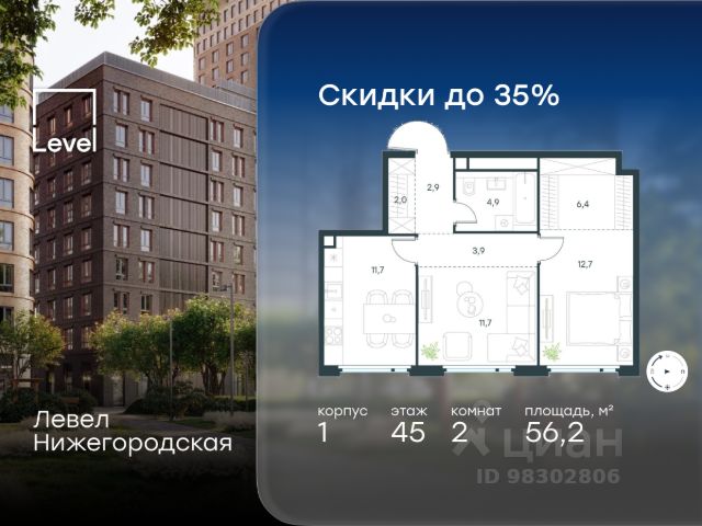 Цена указана с учётом скидки при 100%-й оплате, несубсидированной ипотеке, рассрочке (кроме программы "Рассрочка 0%"). В активно развивающемся районе на юго-востоке столицы продается 2-комнатная квартира площадью 48,8 кв.м без отделки.. Квартира расположена на 30 этаже 37-этажного этажного корпуса 3 в жилом комплексе комфорт-класса Левел Нижегородская (компания Level Group/Левел групп). Отличная транспортная доступность - 10 мин. пешком до станции метро, МЦД-4, БКЛ и МЦК "Нижегородская"; - 13 мин. пешком до станций метро "Андроновка" и "Перово"; - 10 мин. на авто до ТТК; - 14 мин. на авто до Садового кольца. Благоустройство Благоустроенная территория комплекса делится на внешнюю и внутреннюю. Внутренняя часть - это закрытый двор 0,9 га, где обустраиваются детские площадки для разных возрастных групп, беседки для отдыха и работы, несколько спортивных зон, включая воркаут-зоны и лужайку для бадминтона. Здесь же появится ухоженный луг с прогулочными маршрутами. Рядом с жилым комплексом будет создан ландшафтный парк площадью 2,4 га. В парке будут высажены высокие деревья, луговые травы и кустарники, благоустроены лаунж-зоны у пруда, дорожки для бега и прогулок. В центре парка предусмотрена событийная площадь, рядом расположатся дополнительные спортивные и детские площадки, а также зона для выгула домашних питомцев. Внутренняя инфраструктура Дома жилого комплекса будут оснащены коммерческими помещениями, где откроются все необходимые сервисы: магазины, аптеки, салоны красоты, кофейни, службы доставки и многое другое. Комфорт - это когда всё рядом. Кроме того, на территории жилого комплекса Левел Нижегородская предусмотрен подземный отапливаемый паркинг. Этап 1 включает 335 машино-мест и 143 кладовых помещения для хранения сезонных вещей. Технологии и безопасность На территории всех общественных зон постоянно ведется видеонаблюдение и предусмотрен высокоскоростной Wi-Fi. Подъезды, паркинг и внутренний двор оснащены системой контроля доступа. Для удобства жителей создано мобильное приложение, позволяющее связаться с управляющей компанией, осуществлять удаленное управление видеодомофоном или просмотреть изображение отдельных видеокамер по заявке. Для безопасного перемещения по этажам и комфортного спуска в паркинг будут установлены современные лифты от компании BLT Brilliant Elevator. Скорость лифтов - 1,6 - 2,5 м/с. Особенности - Архитектура от экспертов из бюро ARCH(E)TYPE; - Разноуровневая застройка - от секций средней этажности до высоток в 45 этажей (этап 1); - Окна шириной до 2,2 метров (этап1) с видами на Останкинскую башню, Измайловский парк, "Москва-Сити" и Кусковский лесопарк; - Лобби с окнами в пол и потолками от 3,4 метров, оснащенные консьерж-сервисом; - Более 35 видов планировок, включая редкие форматы. Артикул 3-347.