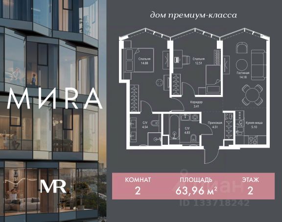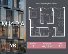 Прямая продажа от застройщика. Продаётся 2-комнатная квартира общей площадью 54.24 м² без отделки в доме премиум-класса МИRА на 5-м этаже 24 этажного дома. Квартира расположена в корпусе 3. Дом премиум-класса МИRA это: • Спокойный район с богатой историей и сложившейся инфраструктурой • Авторская архитектура на стыке классики и современности • Вход в парк прямо из жилого комплекса • Панорамные виды на Яузу, парки, ВДНХ и скульптуру "Рабочий и колхозница" • Удобные сервисы и безопасность для каждого резидента Расположение: Жилой квартал расположен в Алексеевском районе на северо-востоке Москвы, на второй линии домов, таким образом вы сможете дистанцироваться от шума и суеты проспекта Мира, но при этом будете жить недалеко от этой важной городской магистрали. Прямо у дома: • Парк Акведук • Река Яуза • Памятник "Рабочий и колхозница" Пешком: • 16 мин м. ВДНХ На автомобиле: • 12 мин ТТК • 15 мин Садовое кольцо • 12 мин Национальный парк "Лосиный остров" Благоустройство: Концепция благоустройства от бюро "ДРУЖБА" разработана в стиле "Лесная тропа". В уютном дворе расположились словно затерянные в лесу, площадки для отдыха. Они разделяются островками с травами, кустарниками, крупными камнями и деревьями, между которыми проходят узкие песчаные тропинки с деликатной подсветкой по вечерам. Центральной точкой притяжения для жителей станет главная площадь с фонтаном, которая открывается сразу из двух входных групп. Внутренний двор МИRA: • Детская площадка с зонами для игр малышей до трех лет и детей более старшего возраста • Спортивная площадка с профессиональным оборудованием для тренировок • Декоративные перголы • Воздушный арт-объект с подсветкой, похожий на облако • Чайный домик, где в отдельном отапливаемом павильоне можно в любое время года попить кофе с соседями или устроить камерное семейное чаепитие • Зоны для работы и отдыха с гамаком под навесом, скамейками и креслами Инфраструктура и окружение: В Алексеевском районе есть огромные благоустроенные парки, магазины, гимназии с высоким рейтингом и филиалы ВУЗов, частные и государственные детские сады, модные кофейни и фитнес-центры. В квартале МИRА предусмотрены: • 2 ресторана с видом на парк Акведук • 3 кафе • фитнес-студия • подземный паркинг на 330 машино-мест Компания MR предлагает своим клиентам специальные условия приобретения квартир в рамках программ ипотечного кредитования от банков-партнеров. Продам 2-комнатную квартиру в новостройке станция Ростокино (МЦК).