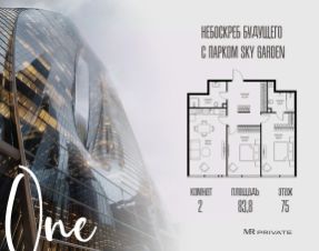 Старт продаж! Квартиры в Москва-Сити в самой инновационной башне Оне. В продаже 2-комнатная квартира площадью 67.20 м² на 38-м этаже. Новый современный жилой комплекс премиум-класса Оне расположен в самом сердце деловой жизни столицы — в Москва-Сити, где захватывающая дух архитектура встречается с безупречным уровнем комфорта. Оне находится в Пресненском районе, в пешей доступности от станции метро "Деловой центр". Проект был разработан выдающимся архитектором Сергеем Кузнецовым при участии международного бюро Gensler. Уникальная скульптурная форма башни, вдохновленная лентой Мебиуса, создает новый узнаваемый силуэт делового центра и задает непревзойденный стандарт вертикальной жизни. По замыслу архитекторов, жилой комплекс представляет собой две вертикальные башни, соединенные в нижней и верхней точках. На 85 этаже расположен Sky Garden — самый высокий в Европе парк с оазисом природы и секретным садом в облаках, а на 83 этаже парит стеклянный мост Sky Bridge с панорамными видами. Важнейшей особенностью комплекса является его всесторонняя инфраструктура по принципу All-in-Оне: закрытый клуб с лаунжами, приватным кинотеатром, бильярдной, рабочими зонами и фитнесом. Здесь же расположена торговая галерея бутиков и премиальный гастро-кластер, концепцию которого разработал известный ресторатор Александр Сысоев. Особенности комплекса: - Эксклюзивная архитектура от главного архитектора Москвы - Самый высокий в Европе небесный сад Sky Garden на 85 этаже - Панорамное остекление от пола до потолка во всех квартирах - Smart-инженерия и сервис уровня пятизвездочного отеля - Приватная клубная инфраструктура All-in-Оне - Трехуровневый паркинг с зарядными станциями для электрокаров - Круглосуточная безопасность и консьерж-сервис Расположение комплекса: - Пешая доступность от станции метро "Деловой центр" - 2 минуты до Экспоцентра - 5 минут до Дома Правительства - 7 минут до Кутузовского проспекта