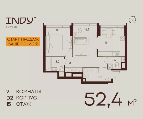 В продаже двухкомнатная квартира площадью 49.1 квм, расположенная на 2 этаже в ЖК Indy Towers (Инди Тауэрс). Продажа по уступке прав по договору долевого участия. Квартира с предчистовой отделкой - White box. Срок сдачи: — IV квартал 2026 года Корпус В Жилой комплекс Indy Towers (Инди Тауэрс) — это современный проект бизнес-класса, разработанный Группой "Аквилон" в Москве. Расположение: Хорошевский район (САО), ул. Куусинена, вл. 21, 21А . Класс жилья: Бизнес-класс. Застройщик: Группа "Аквилон" (входит в ТОП-20 девелоперов России, опыт работы с 2003 года). Состав комплекса: 5 разновысотных башен (от 23 до 55 этажей), объединенных стилобатом. Архитектурный стиль: Футуристичный дизайн с панорамным остеклением, вдохновленный восточной философией и азиатскими курортами. Фасады имеют уникальные паттерны и градиенты. Транспортная доступность: Ближайшая станция МЦК "Зорге" — 35 минут пешком. Станции метро "Октябрьское поле", "Хорошевская", "Сокол" — 1022 минуты пешком или на транспорте. Автомагистрали: близость к ТТК и Ленинградскому шоссе. Парки и экология: Окружен 8 парками, включая Березовую рощу и Ходынское поле. Во дворе комплекса — три тематических сада (Водный сад, Сад цветущих сезонов, Сад игр) с зонами для медитации, детскими площадками и флорариумом-авиарием. Социальная инфраструктура: Детский сад на 125 мест. Фитнес-центр, SPA, коммерческие помещения (магазины, кафе). Подземный паркинг на 640 мест. Система inHOME: Управление климатом, освещением и безопасностью через мобильное приложение. Безопасность: Закрытая территория, видеонаблюдение, Face Key для доступа, IP-домофония. Энергоэффективность: Технологии Termo-S (теплоизоляция) и Soundstop (шумоизоляция). Концепция: Проект вдохновлен философией азиатских курортов, с акцентом на релакс и гармонию. Виды из окон: Панорамные виды на Москву-Сити, исторический центр и парки. Комьюнити-зоны: Grand Lobby в стиле японского минимализма, зоны для коворкинга и отдыха. Indy Towers позиционируется как проект для тех, кто ценит баланс между городской динамикой и гармонией с природой.