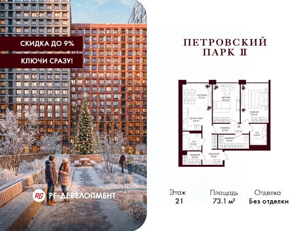 Рассрочка 0%. Первый платёж 30%, второй - не позднее 31.12.2026 г. Продаётся 2-комнатная квартира 65.1 кв.м. в ЖК "Петровский парк II" на 5-м этаже 17 этажного дома. ЖК "Петровский парк II" — жилой комплекс в Савёловском районе, где город ощущается иначе. Здесь история и масштаб Москвы не давят, а задают фон для спокойной, уверенной жизни рядом с центром. Это место, где статус читается не в громких формулировках, а в окружении, архитектуре и ощущении пространства. Коротко о важном: • Район с глубоким историческим контекстом и парковым окружением; • 5 минут пешком до метро "Динамо", рядом с деловой и культурной жизнью города; • Редкое сочетание: энергия мегаполиса и тишина зелёных аллей; • Архитектура от бюро Syntaxis с пластикой форм и индивидуальным характером фасадов; • Панорамные виды на город и зелёные массивы Петровского и Тимирязевского парков; • Закрытый двор без машин, вдохновлённый эстетикой дворцовых садов; • Просторные гранд-лобби с высокими потолками и выверенной, респектабельной эстетикой; • Частный детский сад во дворе; • Подземный паркинг и кладовые; • РГ-Девелопмент - ТОП-20 крупнейших застройщиков Москвы. Расположение комплекса формирует особое ощущение свободы выбора. Утром - прогулка по тенистым аллеям Петровского парка, днём - работа и встречи в деловых кластерах поблизости, вечером - культурные события, рестораны и городские пространства в нескольких минутах пути. Здесь расстояния измеряются не километрами, а шагами от дома. Архитектура "Петровского парка II" задумана как современная доминанта района и одновременно как уважительный диалог с исторической средой. Асимметричные объёмы, волнообразные элементы и игра света и тени создают выразительный, но сдержанный силуэт. Архитектура наполнена воздухом и визуальным ритмом, оставаясь спокойной и уверенной. Общественные пространства продолжают эту логику. Два гранд-лобби с высокими потолками и благородной цветовой палитрой воспринимаются как пространства, где хочется замедлиться: встретить гостей, перевести дыхание после дня или просто почувствовать уровень среды, в которой вы живёте. Внутренний двор комплекса - это отдельный мир, закрытый от машин и городского шума. Ландшафтный дизайн отсылает к регулярным дворцовым садам: геометрия аллей, зелёные "кабинеты", цветники и камерные зоны отдыха создают разные сценарии для повседневной жизни. Здесь органично соседствуют детские игровые пространства, плейхаб, спортивные зоны и тихие места для отдыха. На территории комплекса расположены магазины, кафе и рестораны, а также частный детский сад, встроенный в общую структуру двора. Подземный паркинг и кладовые поддерживают ощущение порядка и цельности пространства. Купить 2-комнатную квартиру в новостройке на проезде Старый Петровско-Разумовский в Москве.