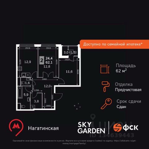 Прямая продажа от застройщика! Жилой Комплекс бизнес-класса. Продаётся 2-к квартира номер 307 общей площадью 60.7 кв.м. на 5-м этаже 26 этажного здания. Без отделки. Цена с учётом скидки. Особенности квартиры: - Распашная планировка - отличное сочетание удобства и свободы. - Увеличенная ширина окна/окон - больше света и визуального простора. - Постирочная - организуйте пространство для стирки и сушки вещей. - Раздельный санузел - больше удобства для всех членов семьи. - Гибкая планировка - создайте пространство по своему вкусу. - Место для игры/занятия спортом - идеальное пространство для активных детей. - Можно оборудовать 2 или более рабочих места - пространство для нескольких человек. - Можно оборудовать рабочее место - комфорт для работы и учёбы. - Просторная мягкая зона - комфорт и уют для отдыха всей семьи. - Линейная кухня - функциональность и практичность в одном решении. - Ниша под шкаф - компактное и удобное место для вещей. - Лоджия - уютное место для отдыха и тишины. Информация о комплексе: Sky Garden расположен в районе Покровское-Стрешнево. На территории этого района шумит листвой одноименный парк. Зеленый живописный район, реки и каналы поблизости, чистый свежий воздух из подмосковных листов - идеальное место, чтобы ощутить себя частью природы. При этом развитая образовательная, социальная и транспортная инфраструктура оставят вам все преимущества жизни в мегаполисе. Sky Garden - идеальный баланс между природной и городской средой. Транспортная доступность: Всего в 12 минутах пешком до м. Тушинская и 15 минутах до станции Тушинская МЦД. На автомобиле: 2 км до Волоколамского шоссе, 2,5 км до МКАД и 15 км до Садового кольца Внутренняя инфраструктура: К вашим услугам современные игровые площадки: тут ваши дети с удовольствием смогут лазить по бревнам, штурмовать горки и стараться не промокнуть, бегая под струями фонтана. В Sky Garden полно возможностей как для совсем маленьких, так и для взрослых. Предусмотрены активности: мастер классы по йоге на английском газоне, воркаут- площадка, велопарковки. Также в вашем распоряжении на территории комплекса будут: поликлиника, аптека, супермаркет, зона для отдыха, сухой фонтан и площадка для подростков. Пространство для работы, оборудованное кофепоинтом и удобными переговорными. Также к вашим услугам кафе и рестораны в коммерческом кластере. Игровая комната, расположенная в центральном лобби, оборудована двухэтажным комплексом, мягкими татами, книжками и играми, способными увлечь ребятню В каждом подъезде на минус первом этаже оборудованы комнаты для хранения взрослых и детских велосипедов, колясок и самокатов Вкуснейшая горячая выпечка, ресторан с любимыми блюдами, надежная мастерская по ремонту обуви, художественная или спортивная секция для ребенка, фитнес или йога для вас, а также всё, что вам нужно для повседневной жизни - есть в нескольких минутах от вашего подъезда Внутри проекта расположена парковая территория площадью 3,5 га с игровыми и спо