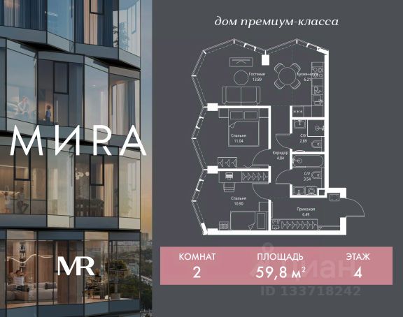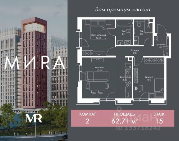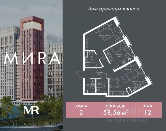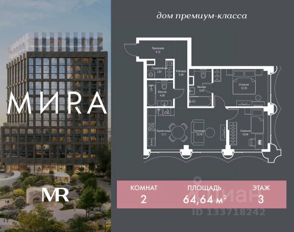 Прямая продажа от застройщика. Продаётся 2-комнатная квартира общей площадью 54.24 м² без отделки в доме премиум-класса МИRА на 5-м этаже 24 этажного дома. Квартира расположена в корпусе 3. Дом премиум-класса МИRA это: • Спокойный район с богатой историей и сложившейся инфраструктурой • Авторская архитектура на стыке классики и современности • Вход в парк прямо из жилого комплекса • Панорамные виды на Яузу, парки, ВДНХ и скульптуру "Рабочий и колхозница" • Удобные сервисы и безопасность для каждого резидента Расположение: Жилой квартал расположен в Алексеевском районе на северо-востоке Москвы, на второй линии домов, таким образом вы сможете дистанцироваться от шума и суеты проспекта Мира, но при этом будете жить недалеко от этой важной городской магистрали. Прямо у дома: • Парк Акведук • Река Яуза • Памятник "Рабочий и колхозница" Пешком: • 16 мин м. ВДНХ На автомобиле: • 12 мин ТТК • 15 мин Садовое кольцо • 12 мин Национальный парк "Лосиный остров" Благоустройство: Концепция благоустройства от бюро "ДРУЖБА" разработана в стиле "Лесная тропа". В уютном дворе расположились словно затерянные в лесу, площадки для отдыха. Они разделяются островками с травами, кустарниками, крупными камнями и деревьями, между которыми проходят узкие песчаные тропинки с деликатной подсветкой по вечерам. Центральной точкой притяжения для жителей станет главная площадь с фонтаном, которая открывается сразу из двух входных групп. Внутренний двор МИRA: • Детская площадка с зонами для игр малышей до трех лет и детей более старшего возраста • Спортивная площадка с профессиональным оборудованием для тренировок • Декоративные перголы • Воздушный арт-объект с подсветкой, похожий на облако • Чайный домик, где в отдельном отапливаемом павильоне можно в любое время года попить кофе с соседями или устроить камерное семейное чаепитие • Зоны для работы и отдыха с гамаком под навесом, скамейками и креслами Инфраструктура и окружение: В Алексеевском районе есть огромные благоустроенные парки, магазины, гимназии с высоким рейтингом и филиалы ВУЗов, частные и государственные детские сады, модные кофейни и фитнес-центры. В квартале МИRА предусмотрены: • 2 ресторана с видом на парк Акведук • 3 кафе • фитнес-студия • подземный паркинг на 330 машино-мест Компания MR предлагает своим клиентам специальные условия приобретения квартир в рамках программ ипотечного кредитования от банков-партнеров. 2-комнатная квартира в новостройке в округе СВАО в Москве.