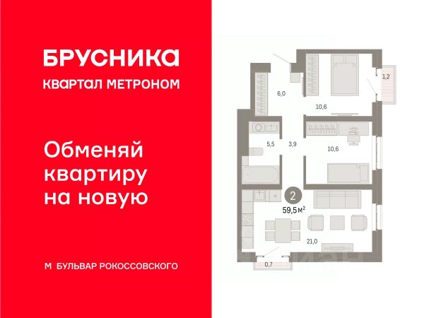Продаётся просторная 2-комнатная квартира общей площадью 55 м² на 21 этаже в новом жилом комплексе "Сиреневый парк", расположенном в Восточном административном округе Москвы на улице Тагильская. Всего 10 минут ходьбы от станции метро "Бульвар Рокоссовского" и одноимённой платформы МЦК. Высококачественное монолитное строительство гарантирует сохранение тепла в доме, а наличие квартир с предчистовой и чистовой отделкой позволяет вам сэкономить время и сразу же переехать в свое жилье после покупки. Благодаря разнообразию планировок вы сможете выбрать идеальный вариант, соответствующий вашим предпочтениям и образу жизни. Предлагаются квартиры: - с просторными кухнями-гостиными, - с нишами для хранения вещей и отдельными гардеробными, - мастер-спальни с собственными санузлами, - большие комнаты с высокими потолками (2,9 м) и с увеличенными безопасными окнами (1,95 м) , которые наполнят ваш дом естественным светом; - с чистовой отделкой по двум дизайн-проектам на выбор; - с остекленными лоджиями и панорамными видами на лес. Каждая деталь в этом доме создана для вашего комфорта: - безбарьерная среда, - бесшумные скоростные лифты, - машиноместа в отапливаемом подземном паркинге и кладовые на -1 этаже с доступом из лифта, - развитая инфраструктура с супермаркетами, кафе, фитнес-клубами, салонами красоты и частным детским садом обеспечивает максимальное удобство жителям. В 300 метрах от ЖК расположен Национальный парк "Лосиный остров". Способы покупки: 100%, Trade-in, Семейная ипотека без наценки, стандартная ипотека. Запишитесь на просмотр в офис продаж и получите свою персональную скидку по акции Назови свою скидку. ЖК "Сиреневый парк" — гармония в деталях, совершенство в каждом моменте. Застройщик проекта - AFI Development. Купить 2-комнатную квартиру в новостройке на улице Тагильская в Москве.