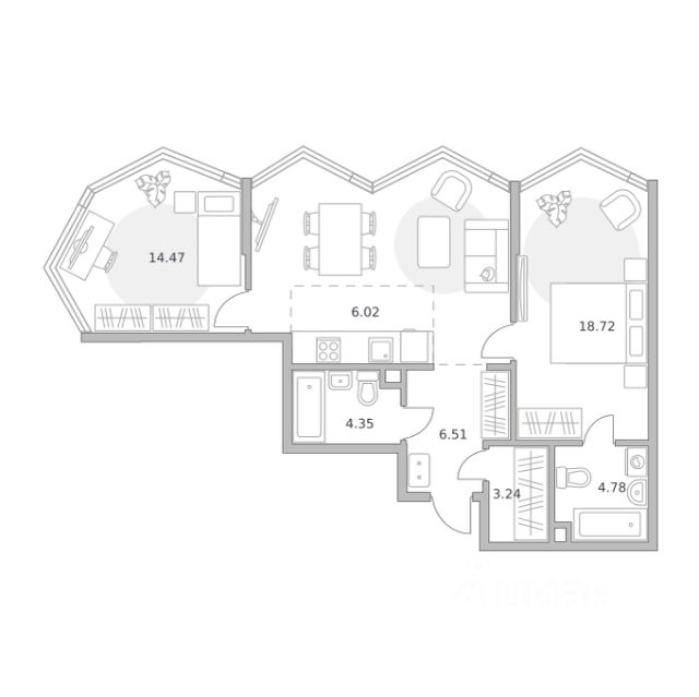 Продаётся 2-комнатная квартира 1755, площадью 61,98 м², на 13 этаже в ЖК "MYPRIORITY Мневники" корпус 1. Стоимость — от 29539349 руб. Квартира без отделки, планировка односторонняя, окна во двор.
