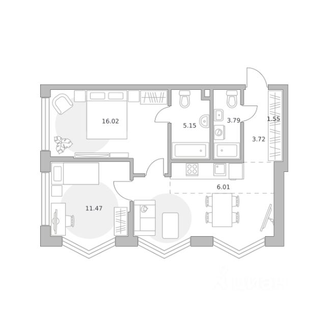Продаётся 2-комнатная квартира 1583, площадью 55,49 м², на 4 этаже в ЖК "MYPRIORITY Мневники" корпус 1. Стоимость — от 29692166 руб. Квартира без отделки, планировка угловая, окна во двор.