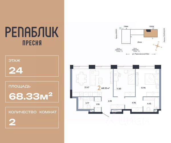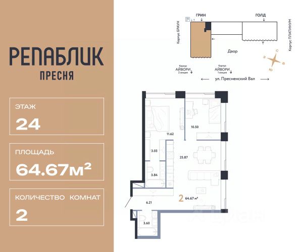 Рассрочка 0% с первым взносом от 20%, ипотека с субсидией или наличные. Подберём способ оплаты индивидуально. Продается 3комнатная квартира на 13 этаже от застройщика Страна Девелопмент. Площадь квартиры 62.25 кв. м. Дизайн-квартал "Republic" — новый проект премиум-класса в Москве от федерального застройщика "Страна Девелопмент". ЦАО, Пресня, 7 мин. от метро "Белорусская". 10 жилых башен и 4 восстановленных здания локомотивного депо образуют уникальное пространство. "Republic" — место, где вы ощутите гармонию истории и современности. За 12 мин. вы сможете дойти до Московского зоопарка, за 10 мин. на авто доехать до Патриарших прудов и Белого дома. Преимущества • Благоустройство. SPA-комплекс с бассейном и термами, гастрономический, учебный и шопинг-центры, приватный бульвар и яркие арт-пространства — для жителей предусмотрены все элементы премиального комфорта. • Панорама на центр. Наслаждайтесь видами ЦАО каждый день: панорама на историческую Пресню и башни Москва-Сити — из своей квартиры или с приватной террасы на крыше. • Концептуальное лобби в каждой башне. С общей террасой на кровле, с библиотекой, коворкингом и фитнес-рум. Стойка консьержа перетекающая в бар и др. • Современные форматы квартир. Свободные планировки, с террасой или балконом, с возможностью установки камина, от 1-комнатных до пентхаусов. Отделка Квартиры сдаются без отделки или в формате White box. При White box уже выполнены все шумные и грязные работы: произведена разводка электричества с подрозетниками, установлены откосы из гипсокартона, устроена стяжка пола с шумоизоляцией и др. Способы покупки Сотрудники "Страна Девелопмент" будут сопровождать вас на каждом этапе сделки, помогут получить одобрение по ипотеке или снизить ежемесячный платеж. - ипотека (стандартная/с субсидией/траншевая) - рассрочка (с ПВ от 20%) - с использованием материнского капитала - оплата наличными Купить 2-комнатную квартиру в новостройке на улице Пресненский Вал в Москве.