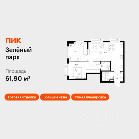 Продаётся 2-комн. квартира площадью 56,9 кв.м на 3 этаже 28 этажного дома (Корпус 5.4, Секция 5) проекта ПИК Зелёный парк. Светлый просторный подъезд на уровне земли, функциональная планировка, большие окна, c отделкой. Большой квартал с оригинальной архитектурой в обжитом районе Зеленограда. От него до станции МЦД-3 "Зеленоград-Крюково" — 20 минут пешком, до Кутузовского шоссе можно доехать на машине за 3 минуты, а до Пятницкого шоссе — за 5 минут. Характер "Зелёного парка" отражён в архитектуре. Квартал состоит из уютных разноэтажных блоков с оригинальными акцентами. Цветовая палитра проекта спокойная и сдержанная: оттенки белого и коричневого сочетаются с пастельным розовым и мятным. В проекте запланированы также два детских сада, две школы и паркинг. На первых этажах откроются магазины, кафе и другие сервисы — чтобы купить кофе и свежий хлеб к завтраку, можно будет просто спуститься на лифте. В уютных дворах-парках появятся места для отдыха, детские площадки, кофейни и зоны отдыха. Рядом — Зеленоградский лес, Парк Победы и Михайловский пруд, где можно гулять и заниматься спортом. У жителей "Зелёного парка" будет возможность получить московскую прописку. Для любителей спорта в 10 минутах пешком от квартала — велодром с BMX-трассой, физкультурно-оздоровительный комплекс Горизонт, а также лыжероллерная трасса длиной около 3 км. Артикул 1031263 (Застройщик АО "СПЕЦИАЛИЗИРОВАННЫЙ ЗАСТРОЙЩИК "ЗЕЛЕНОГРАДСКИЙ")