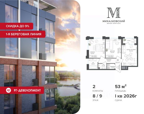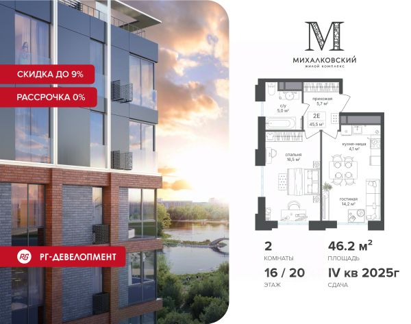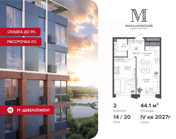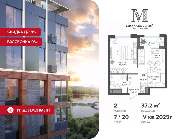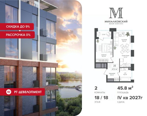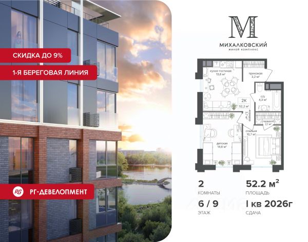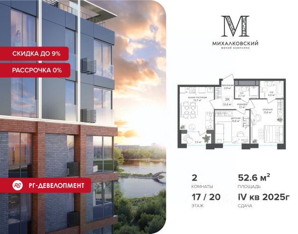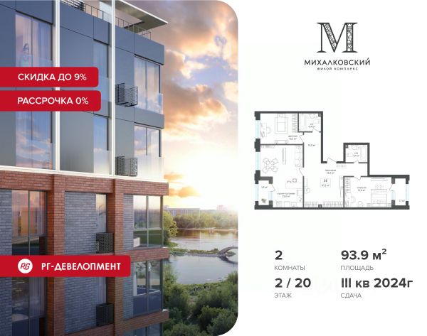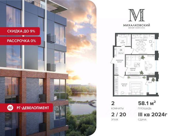 Рассрочка 0% + Скидка 5% на готовые квартиры. Компания "РГ-Девелопмент" запускает комфортную программу рассрочки на квартиры в построенных корпусах. Предложение распространяется на квартиры со свободной планировкой в построенном корпусе 3. Условия: - Скидка 5% - Первый платеж — от 30% от стоимости объекта. - Оставшаяся сумма выплачивается не позднее 31.03.2026. Идет выдача ключей. Продаётся 2-к квартира 58,1 кв.м. в ЖК "Михалковский" на 2-м этаже 20 этажного дома. Скидка 9% при покупке квартиры! Цена указана с учетом максимального размера скидки. Ипотека для каждого! Полная стоимость кредита от 12,380% до 18,537%. Ставка от 0,11% в АО "Альфа-Банк", ген. лицензия ЦБ РФ 1326 от 16.01.2015. Ставка фиксируется на первые 12 месяцев, далее полная стоимость кредита от 22,022% до 24,599% ставка 21,59%. Первоначальный взнос — от 20,1% от стоимости квартиры. Срок кредитования — от 4 до 30 лет. Компания "РГ-Девелопмент" предоставляет скидку на квартиры в жилом комплексе. Акция действительна до 31.03.2026 включительно. Чтобы воспользоваться предложением, необходимо подписать договор на приобретение недвижимости до 31.03.2026 включительно. Действует программа "Растет семья - растет и квартира". Компания "РГ-Девелопмент" вошла в ТОП-10 девелоперов по объёму введённого жилья в "Старой Москве" по итогам 2025 года. Прямая продажа от застройщика! Квартиры без отделки. Срок сдачи корпуса - 3 кв. 2024 г. Особенности проекта: Завораживающие виды Красивое благоустройство Уникальная локация для Москвы (рядом Головинский парк, пруды, усадьба Михалково) Рядом с центром В проекте присутствует: архитектура голландского бюро MLA+, зеленые зоны, транспортная доступность, благоустроенная территория, подземный паркинг, детский сад и выход на Головинский парк с пятью прудами. Название комплекса указывает на одну из его черт - соседство с имением Михалково. Позвольте себе жить в месте, где проводили свой досуг династии Дашковых и Паниных. Продается 2-комнатная квартира с отделкой от застройщика в районе Головинский в Москве.