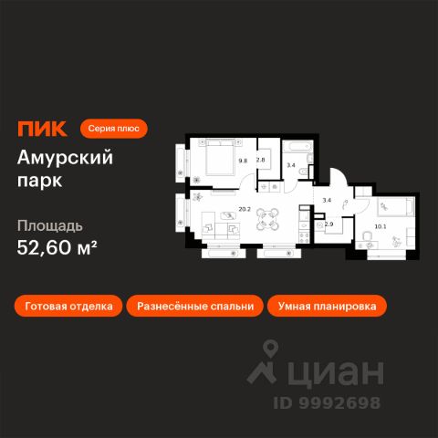 Продаётся 2-комн. квартира площадью 54,2 кв.м на 13 этаже 30 этажного дома (Корпус 1.3, Секция 3) проекта ПИК 2-й Иртышский. Светлый просторный подъезд на уровне земли, функциональная планировка, большие окна, c отделкой. "2-й Иртышский" возводится на востоке Москвы, между тремя станциями метро "Щелковская", "Черкизовская" и "Бульвар Рокоссовского". Проект включает жилые корпуса с индивидуальной архитектурой, школу и детский сад. Проект состоит из зданий разной высоты и разной по характеру архитектуры. Узнаваемой доминантой квартала станет башня из стекла и металла, напоминающая водопад. Квартал расположен в окружении нескольких знаковых рекреационных зон столицы. Вам понадобится всего несколько минут, чтобы оказаться в атмосфере спокойствия и слияния с природой. Всего 15 минут пешком, и вы в "Сиреневом саду", а дорога до национального парка "Лосиный остров" или Гольяновского пруда займёт 6 минут на авто. До Черкизовского детского парка и "Усадьбы Измайлово" можно доехать за 15 минут. До станции "Черкизовская" можно дойти пешком за 25 минут или доехать на общественном транспорте за 20. Дорога до станций "Бульвар Рокоссовского" и "Щёлковской" займёт 25 минут на общественном транспорте. Автомобилисты оценят удобные выезды на Щёлковское шоссе и СВХ. Путь до МКАД займет около 14 минут, до ТТК - 20. Артикул 961800 (Застройщик ООО "СЗ "Л-Девелопмент") Продается 2-комнатная квартира с отделкой от застройщика в районе Гольяново в Москве.