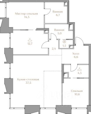 Квартира идеальной планировки с двумя мастер-спальнями. Здесь всё продумано до сантиметра, и в каждом жилом помещении есть уютный балкон.