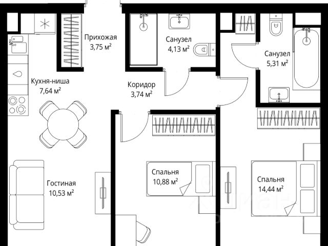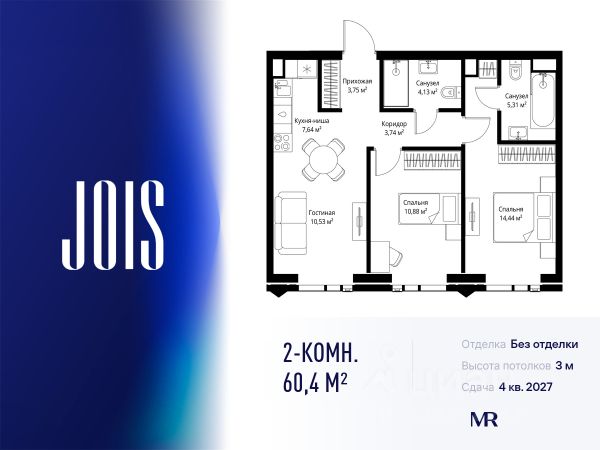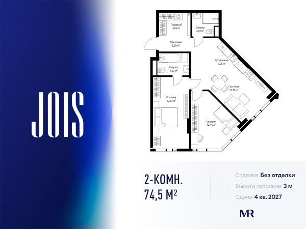 10 минут от Москва-Сити В продаже квартира площадью 72.90 м² с предчистовой отделкой на 26 этаже 55 этажного дома. Квартира расположена в корпусе Anna. JOIS это премиальный жилой комплекс от девелопера MR в районе Хорошёво-Мнёвники. Он включает несколько эффектных небоскрёбов высотой 47-56 этажей, эксклюзивные форматы квартир с панорамным остеклением, подземный двухуровневый паркинг на 239 м/м, собственную приватную инфраструктуру, закрытый ландшафтный парк 2,3 Га с функциональным зонированием и охраняемой территорией. Над проектом работали лучшие команды международных агентств с многолетним опытом: Genpro, S&P, iLight International и другие. Расположение Пешком: - 5 мин. ст. МЦК "Хорошёво"; - 15 мин. ст. м. "Народное ополчение"; - 10 мин. ст. метро "Звенигородская" с 2027 года; - 20 мин. причал "Карамышевский". На автомобиле: - 3 мин. до Звенигородского шоссе; - 5 мин. до ТТК: - 8 мин. до Серебряного бора и Строгинского затона - 10 мин. до ММДЦ "Москва-Сити"; - 40 мин. до аэропорта "Шереметьево"; Благоустройство - собственный ландшафтный парк 2,3 Га; - парк скульптур от Cosmoscow; - консьерж-сервис 24/7; - сервисный лифт и вход; - игровые и спортивные площадки; - коворкинг с библиотекой; - лаунж-зона с камином; - игровые комнаты для детей и клуб для подростков с оборудованием для видеоигр; - спортивная студия для индивидуальных тренировок; - гостиная с мини-кухней; - зоны для выгула собак; - подогрев пешеходных дорожек в зимний период; - автополив зелёных насаждений; - премиальные рестораны, кафе, химчистки, аптеки и супермаркеты. Окружение - 4 парка: Покровское-Стрешнево, Филёвский парк, Серебряный бор и Берёзовая роща; - 15 общеобразовательных заведений, в том числе две школы из самых лучших в Москве: государственная школа "Интеграл" и частная "Хорошкола"; - спортивное сооружение "ВЭБ Арена", домашний стадион ФК ЦСКА; - крупнейший в Европе торгово-развлекательный центр "Авиапарк". Продам 2-комнатную квартиру с отделкой от застройщика в районе Хорошево-Мневники в Москве.