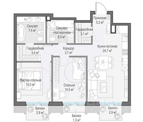 Продаются апартаменты общей площадью 173,3 кв. м. с 2-мя спальнями и кухней-гостиной. О жилом комлексе Компания Vesper представляет проект "Левенсон" в исключительной локации — на Патриарших прудах. Проект собирает комбинацию из легендарных исторических зданий типографии поставщика императорского двора Александра Левенсона и объектов современной архитектуры. Новый проект Vesper создан для ценителей подлинных исторических особняков, наполненных совершенными технологиями для создания абсолютного уровня комфорта и эстетики жизни. Клубный дом "Левенсон" объединяет сразу несколько форматов жилой недвижимости, отвечающих самым высоким запросам: современный дом, два исторических здания, частная резиденция. В проекте представлены квартиры и апартаменты с патио, таунхаусы, пентхаусы с террасами. О застройщике Девелопер проекта Vesper специализируется в премиальном сегменте клубной жилой недвижимости. Портфель компании включает 22 проекта в Москве и странах Европы. Актуальные архитектурные проекты, индивидуальный дизайн, передовые технологии, качественные материалы и лучшие мировые практики воплощены в каждом доме компании. Расположение и транспортная доступность Расположение проекта в районе Патриарших прудов позволит резидентам чередовать яркие впечатления от динамичной жизни в мегаполисе с комфортным отдыхом в уединении. Лучшие рестораны высокой кухни, кафе, театры, выставочные залы и бутики здесь соседствуют с тихими переулками и скверами. Архитектура Архитектурная концепция от бюро "Цимайло, Ляшенко и партнеры" гармонично дополняет шедевры модерна новыми формами и материалами. Все квартиры предлагаются с высококачественной отделкой натуральными материалами, оборудованными кухнями и ванными комнатами. Комфорт жизни резидентов будут обеспечивать шумопоглощающие окна, многоуровневая система очистки воды, технология "умный дом" и система очистки воздуха. Инфраструктура Вся территория резиденций "Левенсон" объединена ландшафтным дизайном, выполненным в изящных пропорциях клубного пространства. Благодаря смене архитектурных эпох между зданиями сформировалось несколько камерных пространств, каждое из которых архитекторы бюро Basis представили в виде отдельной комнаты. Технические детали проекта: — Инновационная система микроклимата. — Приточно-вытяжная вентиляция с подготовкой и увлажнением воздуха. — Система контроля и управления доступом, видеонаблюдение. — Служба ресепшн. Техническая служба эксплуатации и обслуживания здания. — Многоуровневая система очистки воды. — Бесперебойное обеспечение горячей водой. — Окна с повышенным уровнем шумоизоляции.