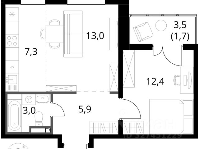 Продаётся 2-комнатная квартира 279, площадью 57,32 м², на 3 этаже в ЖК "Живописный" корпус 1. Стоимость — от 13981175 руб. Квартира с отделкой, планировка угловая, окна во двор.
