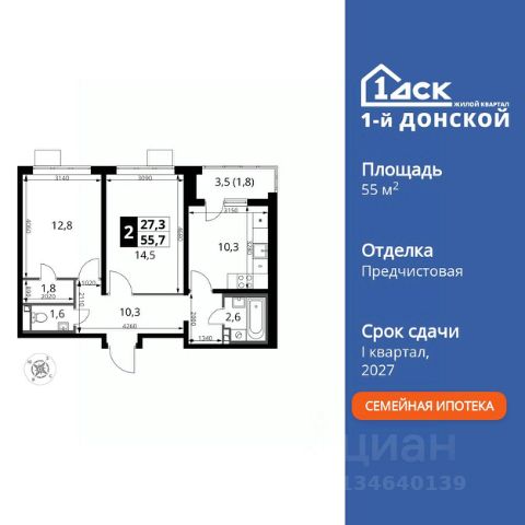 Прямая продажа от застройщика! Жилой Комплекс класса Комфорт Плюс. Продаётся 2-к квартира номер 656 общей площадью 55.7 кв.м. на 21-м этаже 24 этажного здания. Предчистовая отделка. Особенности квартиры: - МЦД-5 в пешей доступности - Квартал с собственной набережной - Свои 2 детских сада и школа - Организуем показ в удобное для вас время! - Просторная спальня, в которой можно разместить большую кровать. - Линейная планировка - максимальная функциональность и удобство. - Раздельный санузел - больше удобства для всех членов семьи. - Просторная кухня - место для семейных ужинов и кулинарных экспериментов. - Гардеробная - удобство для хранения и организации вещей. - Ниша под шкаф - компактное и удобное место для вещей. - Лоджия - уютное место для отдыха и тишины. Квартира с предчистовой отделкой. Вам не придется заниматься черновыми и трудоёмкими работы, а чистовую отделку и дизайн - сделайте на свой вкус. Информация о комплексе: ЖК "1-й Донской" в 7 км от МКАД: гармония городского комфорта и природы. Квартиры на 2-3 стороны света, форма секций и разная этажность создают динамичную архитектуру. Тёплая палитра фасадов и подсветка подчеркивают образ. Рядом - Ермолинский парк, Видновский лесопарк и Жуковский парк. Природа воздействует на все уровни восприятия: от видов до звуков и ароматов. Идеальный баланс для жизни в гармонии с окружающей средой. Транспортная доступность: Комплекс удобно расположен в 7 км от МКАД по трассе М-4 Дон (через Видное). Расстояние до Каширского шоссе составляет 12 км. Добраться до метро и центра Москвы позволяет развитая сеть маршрутов общественного наземного транспорта. Действующая ж/д станция Калинина Павелецкого направления в 15-17 минутах ходьбы (МЦД-5 в 2025-2026 гг). Внутренняя инфраструктура: "1-й Донской": продуманная среда в развивающемся районе. На территории - муниципальные школа и 2 детских сада, поликлиника, торговый центр с площадью для мероприятий. Сеть пешеходных маршрутов ведёт к магазинам и кафе, отделённым от дорог зелёными фито-стенами. Сквозные подъезды с панорамным остеклением и входами с улицы и двора наполнены светом. Всё для комфортной жизни в шаговой доступности, от повседневных нужд до общественных пространств. Квартира с предчистовой отделкой - ваш дизайн без черновых работ