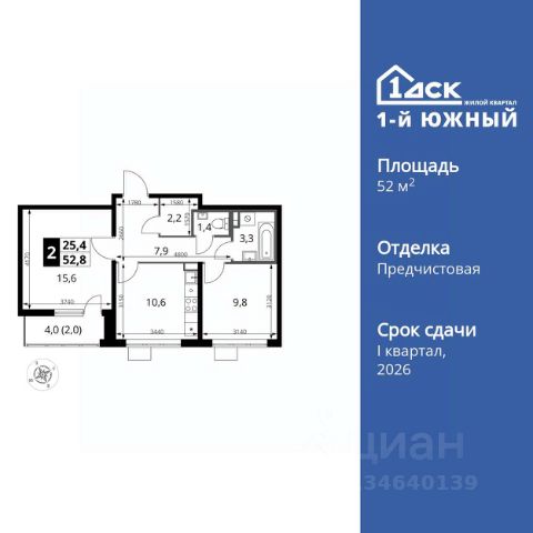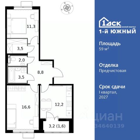 УСПЕЙ ПО СЕМЕЙНОЙ ИПОТЕКЕ БЕЗ НАЦЕНКИ! Квартиры с отделкой от 40 000 рублей в месяц! Прямая продажа от застройщика! Жилой Комплекс класса Комфорт Плюс. Продаётся 2-к квартира номер 150 общей площадью 59.1 кв.м. на 15-м этаже 25 этажного здания. Отделка Whitebox. Цена с учётом скидки. Особенности квартиры: - МЦД-5 в пешей доступности - Квартал с южным садом - Свои 3 детских сада и 2 большие школы - Просторная спальня, в которой можно разместить большую кровать. - Линейная планировка - максимальная функциональность и удобство. - Гостевой санузел - комфорт и удобство для ваших гостей. - Раздельный санузел - больше удобства для всех членов семьи. - Просторная кухня - место для семейных ужинов и кулинарных экспериментов. - Просторная мягкая зона - комфорт и уют для отдыха всей семьи. - Возможность добавить спальное место - дополнительный комфорт для гостей. - Гардеробная - удобство для хранения и организации вещей. - Просторная лоджия - идеальное место для уютных вечеров. Квартира с предчистовой отделкой (White box). Вам не придется заниматься черновыми и трудоёмкими работы, а чистовую отделку и дизайн - сделайте на свой вкус. Информация о комплексе: Одно из преимуществ проектов 1- ДСК большие застекленные лоджии. Другое преимущество честный евро-формат. Во всем проекте предусмотрена система Умный дом. В состав устанавливаемого пакета устройств входит: WiFi реле для управления группами потребителей, беспроводной кран перекрытия с эл. приводом, беспроводной сенсор протечки, Яндекс Станция Мини. Его расположение можно назвать удачным за счет транспортной доступности и близости к природным объектам. По соседству лес, а в каждом дворе плодовые деревья. Весной квартал окутывает бело-розовое облако: это цветут яблони, груши, сливы. К августу в воздух наполняется ароматом созревших плодов. Зимой среди покрытых инеем деревьев протянулась лыжня. Транспортная доступность: - Общественный транспорт: Действующая ж/д станция Булатниково (в перспективе будущая МДЦ D5) в пешей доступности, всего 10-12 минут. - Личный автотранспорт: Удобный выезд на трассу М4-Дон в сторону Москвы и области 850 м, до МКАД - 1 км Внутренняя инфраструктура: Красивые продуманные подъезды - еще одно преимущество проекта 1-й Южный. Вход в сквозные подъезды есть и с улицы, и со двора. Благодаря сплошному остеклению в них всегда светло и уютно. Подъезды расположены на уровне земли, поэтому и молодым родителям с коляской, и жильцам с ограниченными возможностями вход и выход неудобств не доставят. В помещении предусмотрено место под стойку ресепшен с выводом инженерных сетей. Если жильцы решат на общем собрании, что необходим охранник или консьерж, организовать для них рабочее место можно быстро и с минимальными затратами. В подъездах предусмотрены уборные для детей и взрослых. Колясочные в каждом подъезде позволяют поддерживать порядок и чистоту на этажах. На случай прогулки с четвероногим питомцем в непогоду в подъездах устроены лапомойки. Во дво