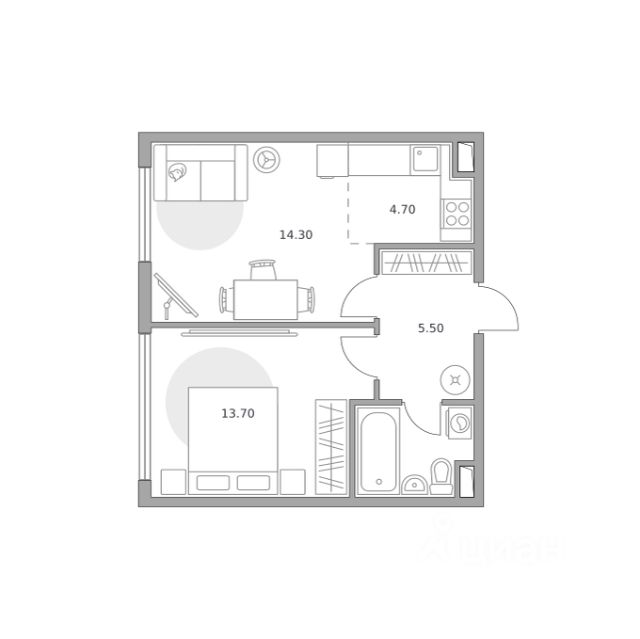 Продаётся 2-комнатная квартира 239, площадью 47,40 м², на 14 этаже в ЖК "Бригантина" корпус 1. Стоимость — от 12706762 руб. Квартира white box, планировка односторонняя, окна во двор.