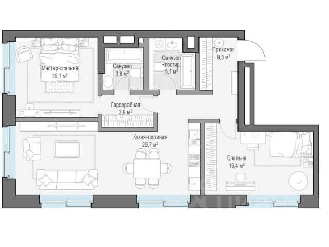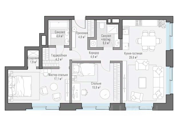 Просторная квартира с двумя приватными мастер-спальнями площадью 120,3 кв. м. В кухне-гостиной расположены 3 больших окна и балкон с видом на Чистопрудный бульвар. Мастер-спальня станет вашим любимым местом в квартире, окно в ванной комнате превратят привычные процедуры в настоящий ритуал. Утром вы будете заряжаться энергией первых лучей солнца и любоваться видами на бульвар. Роскошная планировка, прекрасные виды из окон и высота потолка 3,9 м подчеркивают изысканность и уникальность квартиры. "Чистые Пруды" - исторический дом на 34 квартиры в уникальном атмосферном районе Москвы, в 50 метрах от Чистых прудов. Это одно из самых романтичных и престижных мест столицы. Дом расположен в глубине квартала, в окружении тихих переулков - в полной тишине и приватности старого московского двора. "Чистые Пруды" - деликатно реконструированный исторический дом с изысканной архитектурой начала прошлого века авторства барона Отто фон Дессина. У дома максимально сохранены архитектурные формы 1915 года и подлинные кирпичные стены. В "Чистых Прудах" создана небывалая для таких домов инфраструктура. Только для жителей на месте каретного двора XIX века расположен Clubhouse с пространствами для общения соседей, здорового образа жизни и развития детей. В Lounge выделены каминная, патио, зона для проведения мастер-классов и настольных игр. Работает бесплатный фитнес по стандарту Fit Lab с зонами кардио, силовых тренажёров, свободных весов и функционального тренинга. Для детей в Clubhouse создана игровая комната по стандарту Kid`s Lab. Есть свой всесезонный двор-сад. В доме представлены роскошные квартиры с дровяными каминами и высокими потолками от 3,9 до 5,4 м. О жителях и доме заботится Служба комфорта Smineх, которая предлагает сервис уровня 5-звёздочных отелей и сохраняет изначальный облик и концепцию дома. Девелопер проекта - Sminex. Компания обладает 23-летним опытом строительства жилой и коммерческой недвижимости. В 2022 году Sminex приобрёл девелопера "Интеко", в 2024 году - "Инград". Сегодня Sminex - девелопер N1 элитной и премиальной недвижимости, который создаёт комфортную и престижную среду.