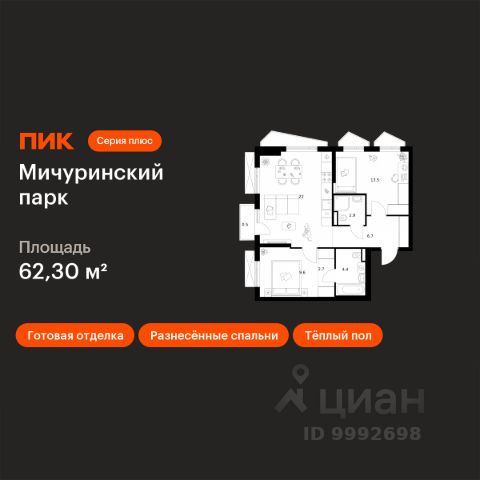 Продаётся 2-комн. квартира площадью 49,1 кв.м на 19 этаже 23 этажного дома (Корпус 4.4, Секция 1) проекта ПИК Мичуринский парк. Светлый просторный подъезд на уровне земли, функциональная планировка, большие окна, c отделкой. "Мичуринский парк" расположен на западе Москвы, в районе Очаково-Матвеевское, в 7 минутах пешком от метро "Озёрная". Архитектурную концепцию корпусов 4.4 и 4.5 разработала российская студия KK ARCHSTUDIO. У каждого корпуса свой характер — его формируют уникальная форма зданий и пластика фасада. Динамичные складки эркеров образуют характерный геометрический рисунок, который поддерживают и дополняют архитектурные детали. В корпусах 4.4 и 4.5 открытые балконы разнообразных форм: прямоугольные, фигурные. Все балконы выходят в тихий внутренний двор-парк. В эркерной части обоих корпусов предусмотрены лоджии. У подъездов будет два выхода: на улицу и во двор-парк. В наших дворах мы установим столы и лавочки со встроенными зарядными устройствами. Не нужно будет возвращаться домой, чтобы зарядить смартфон или ноутбук: можно весь день работать на свежем воздухе. В лобби "Мичуринского парка" будет удобная зона ожидания, где можно встретить друзей, курьера или дождаться такси, а также гостевая туалетная комната со столиком для пеленания. На территории проекта предусмотрен подземный паркинг и кладовые с надежной системой вентиляции, пожаротушения и системой круглосуточного видеонаблюдения. Собственная инфраструктура проекта включает два детских сада и две школы. Также по соседству с жилым комплексом будет построен многофункциональный торгово-офисный комплекс Lakes. Вдоль всего "Мичуринского парка" будут проходить несколько пешеходных бульваров с местами для отдыха. Рядом с проектом несколько зелёных зон, которые прекрасно подойдут для отдыха и спорта на свежем воздухе. Жители "Мичуринского парка" смогут выбирать, куда отправиться на прогулку: в пешей доступности Очаковский парк, парк Школьников и парк Олимпийской деревни, а на автомобиле можно быстро добраться до Тропарёвского лесопарка и Мещерского парка. Вблизи "Мичуринского парка" расположены ведущие вузы: МИРЭА, МГИМО, РАНХиГС, Институт радиотехники и телекоммуникационных систем и Академия ФСБ. Артикул 956181 (Застройщик ООО "СПЕЦИАЛИЗИРОВАННЫЙ ЗАСТРОЙЩИК "ОЗЁРНАЯ 44")