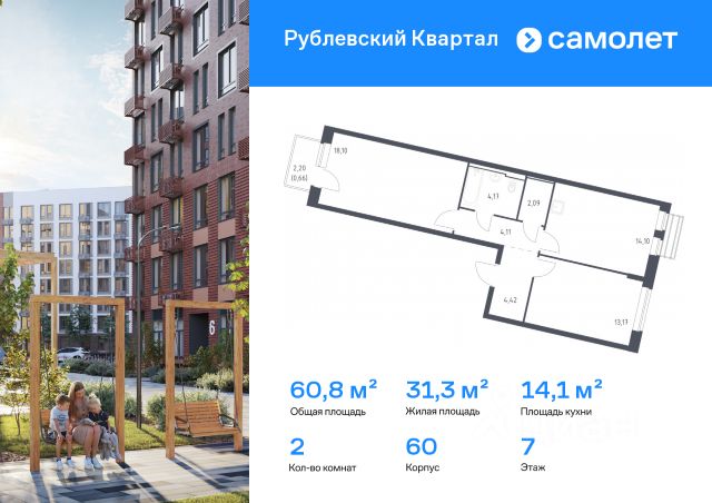 Предлагается 2-комнатная квартира комфорт-класса 57,5 кв.м в корпусе 54 на 7 этаже, в ЖК "Рублевский Квартал" Квартира с чистовой отделкой. Доступность дополнительных опций уточняйте у застройщика. Приобрести квартиру возможно по специальным акциям от застройщика, с текущими условиями акций можно ознакомиться в блоке "Акций". Цена динамическая и может отличаться, уточняйте актуальность у застройщика. Жилой комплекс "Рублевский Квартал" на западе Москвы окружен Подушкинским и Дубковским лесами. Рядом ж/д станция Усово и МЦД-1 "Одинцово". На территории комплекса — школа, детский сад, поликлиника и торговый центр. Архитектура с переменной этажностью от 3 до 12 этажей гармонично вписывается в природу. Закрытый двор-парк, кленовые аллеи и игровые зоны создают уют. Квартиры с отделкой и живописными видами на лес.