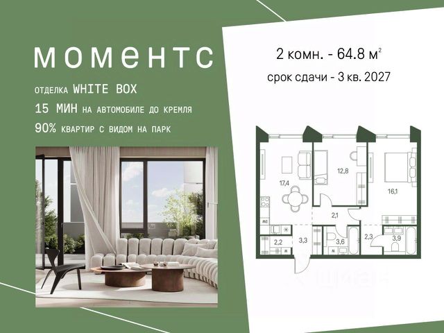 Цены указаны с условием 100% оплаты и стандартной ипотеки. Продается 2-к. квартира номер 129 общей площадью 70.5 кв.м. на 10-м этаже 30 этажного дома, корпус 2.1. С предчистовой отделкой. МОМЕНТС — ЖК бизнес-класса, расположен на расстоянии вытянутой руки от старинного усадебного парка Покровское-Стрешнево. МОМЕНТС — это единение города и природы, дом, который помогает обрести гармонию и баланс в жизни. МОМЕНТС расположен на Волоколамском шоссе с удобным выездом в центр и в область, а также с расположенными в пешей доступности объектами транспортной инфраструктуры (МЦК и МЦД-2). Жилой комплекс будет состоять из 3 очередей — 8 корпусов высотой от 4 до 47 этажей. Здания будут расположены под разными углами для максимальной открытости солнцу и максимально роскошным видовым характеристикам. Внутренний двор: Иммерсивное благоустройство от британского бюро Gillespies и West8 сфокусировано на эмоциональном и чувственном опыте. Каждая прогулка по Moments погружает в путешествие со сменой сценариев и плавным потоком уникальных моментов. - Пешеходная экотропа,которая соединяет комплекс с парком Покровское-Стрешнево - Двор с фонтаном - Зеленые сады и лаунж-зоны - Пространства для пикников и общения - Зоны активного отдыха. Детские и спортивные площадки - Пешеходные тропы и велодорожки - Разнообразная коммерческая инфраструктура - Детский сад на 175 мест - Школа на 300 мест - Игровые площадки из натуральных материалов - Сенсорные сады - Безбарьерное зонирование