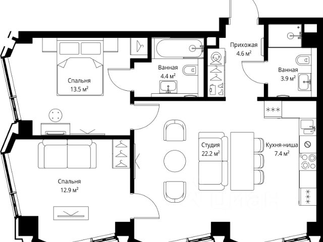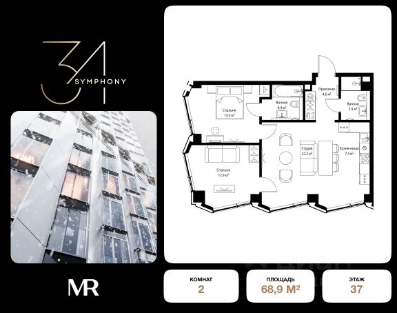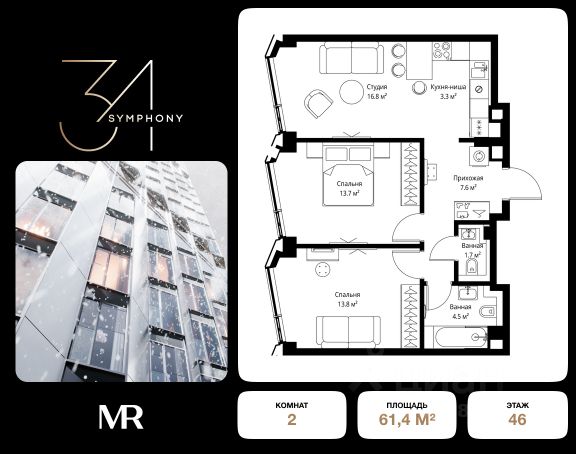 Дом сдан. Ключи в день покупки! В продаже 2-комнатная квартира площадью 59.40 м² с предчистовой отделкой на 35 этаже 43 этажного дома в корпусе Сильвер. ЖК Симфония 34 - концептуально новый жилой комплекс премиум-класса с подземной парковкой, состоит из четырех башен высотой 36 - 54 этажа. Квартиры сдаются с базовой (предчистовой) отделкой MR BASE или дизайнерской чистовой отделкой MR READY. Высота потолков 3 - 6 метров, окна высотой до 2,6 м. Более 100 кладовых в подземной части ЖК и более 500 на этажах. Безопасность - Система контроля входа на территорию комплекса, биометрия - Система автоматического водяного пожаротушения и противопожарного водопровода, система пожарной вентиляции - Доступ на парковку при помощи системы распознавания автомобильных номеров, карточка для контроля доступа резидентов - Система видеонаблюдения - Круглосуточная связь через приложение, телефон, голосовые сообщения с охраной, консьержем, call-центр. Расположение Пешком - 6 минут до метро "Дмитровская" - 15 минут до Тимирязевского парка На машине - 5 минут до Савеловского вокзала и Аэроэкспресса в Шереметьево - 10 минут до Москва-Сити и Садового кольца Благоустройство - 70% территории отведены под зеленые насаждения и ландшафтный дизайн - Приватный Японский сад - Детские площадки с зонированием по возрасту - Clubhouse для резидентов - Wellness & SPA - Зона для пикника, зона с гамаками - Центральное лобби, ресторан, коммерческие помещения - Дополнительный вход/выход на территорию комплекса Окружение - В 10 минутах от Symphony 34 находится дизайн-завод Flacon, где регулярно проходят культурно-образовательные и развлекательные мероприятия - Тимирязевский парк расположен в 850 м. Площадь парка 232 га - Рядом расположен парк "Дубки", площадью 16,5 га. - В 15 минутах расположен Хлебозавод 9. Здесь находятся шоурумы брендов, кафе разных кухонь мира, образовательные проекты и площадки для мероприятиКомпания MR предлагает своим клиентам специальные условия приобретения квартир в рамках программ ипотечного кредитования от банков-партнеров. 2-комнатная квартира с отделкой от застройщика рядом с метро Тимирязевская.
