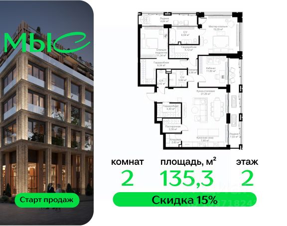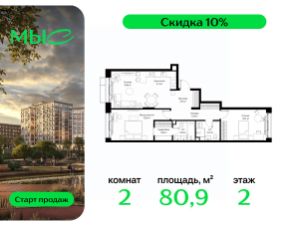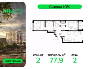 Прямая продажа от застройщика. Продаётся 2-комнатная квартира общей площадью 78.86 м² без отделки в премиальном жилом комплексе "МЫС" на 2-м этаже 12 этажного дома. Квартира расположена в корпусе "Волга". Проект МЫС — это, прежде всего, идеальное место для семей. В рамках проекта построят государственную школу, два детских сада и дворец спорта площадью 20 000 м2 с термальным комплексом, выплывным бассейном, фитнес-залом, теннисными, сквош и падел кортами и секциями для детей. На территории площадью, сравнимой с тремя парками Зарядье, появятся кафе и рестораны, пруд с набережной, спортивные и детские площадки, скейт-парк, лыжные и веломаршруты. Расположение: - 2 минуты до скоростной трассы М1 и Минского шоссе; - 10 минут до МКАД; - 15 минут до МЦД Лесной Городок - 20 минут до делового центра "Москва-Сити"; - 28 минут до аэропорта "Внуково". Благоустройство: - велосипедные и лыжные маршруты; - собственная набережная и парк; - лаунж-зоны в окружении природы; - беседки у очага; - дворец спорта площадью 20 000 м²; - термальный комплекс с тремя бассейнами; - 4 теннисных и падел-корта; - 6 сквош-кортов; - многофункциональный спортзал; - скейт-парк; - просторная площадь для прогулок с фонтаном; - детский клуб с творческими секциями; - гастро-доминанта; - кафе у пруда, рестораны, ритейл. Окружение - соседство с лесным фондом; - школа на 1250 мест и 2 детских сада на 350 и 255 мест; - Дубковский и Подушкинский леса, парк "Рассказовка", Мещерский парк. Действуют специальные условия при 100% оплате, подробности уточняйте у менеджера в офисе продаж.