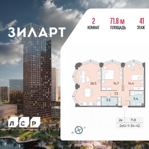 Продается 2-комн. кв-ра площадью 56.80 кв.м на 6 этаже 43 этажного монолитно-кирпичного дома в ЖК "ЗИЛАРТ" от Группа ЛСР. ЗИЛАРТ СПАРК — новый дом бизнес-класса в жилом квартале "ЗИЛАРТ" высотой 150 метров. Он сочетает в себе современную архитектуру, передовые технологии и восхитительные виды на ландшафтный парк "Тюфелева Роща" и бульвар Братьев Весниных. Близкое расположение к музейно-выставочному центру "Коллекция" и концертному залу создает вдохновляющую атмосферу места, где переплетаются жизнь и творчество. ЗИЛАРТ СПАРК расположен в престижном Даниловском районе. В пешей доступности находятся несколько станций метро: "Тульская", "Автозаводская", "Технопарк" и недавно открытая "ЗИЛ" Троицкой линии, с которой можно пересесть на одноименную станцию МЦК, а позже и на станцию "ЗИЛ" Бирюлевской линии (открытие запланировано на 2028 год). В пешей доступности есть вся необходимая инфраструктура: супермаркеты, салоны красоты, уютные кафе и рестораны, спортивные студии, места для досуга, отдыха и развлечений. На благоустроенной набережной Марка Шагала располагается действующий причал "ЗИЛ". Жилой комплекс даст возможность прогуляться по живописной набережной, просторному парку и бульвару. Любители здорового образа жизни и спортсмены оценят современные площадки для спортивных игр и фитнес-центр с бассейном. Молодые родители будут спокойны за настоящее и будущее детей благодаря современной образовательной среде. В "ЗИЛАРТе" расположена одна из самых больших школ России на 2,5 тысячи учеников.