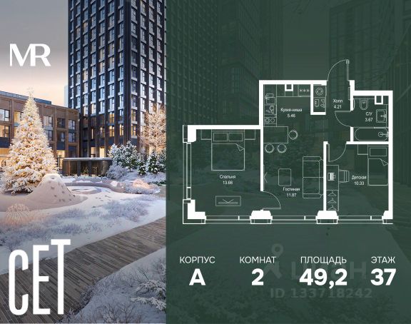 Прямая продажа от застройщика. В ЖК Сет продается 2-комнатная квартира площадью 51.28 м², расположенная в корпусе А, на 31 этаже 52 этажного дома. Сет имеет стратегически выгодное расположение в ЗАО, в районе с большой историей и блестящим будущим: между природной зоной долины реки Сетунь и Кутузовским проспектом. В рамках возведения первой очереди предусмотрено три корпуса высотой 18, 45 и 59 этажей. На верхних этажах спроектированы общедоступные смотровые площадки с панорамным обзором на центр столицы. Преимущества проекта: • Функциональные планировочные решения • Контроль проникновения через входную дверь • Система управления освещением и температурой в квартире • Система защиты от протечек с функцией перекрытия воды • Вход в подъезд по биометрическим считывателям Face ID • Скоростные лифты • Двухуровневый подземный охраняемый паркинг на 495 машино-мест Застройка Сет включает в себя не только жилые корпуса, но и инфраструктурные объекты. Все необходимое для повседневного комфорта будет расположено в шаговой доступности: • Фитнес-Клуб с бассейном • Ведущая городская школа, детский сад и школа искусств • Центр культуры и досуга • Медицинский центр • Кафе и рестораны Расположение комплекса: Пешком: • Метро "Давыдково" - 17 минут • Парк "Долина реки Сетунь" - 3 минуты • Открытие новых станций метро в шаговой доступности в будущем Инфраструктура: Разнообразить свой день резиденты Веер смогут также проводя больше времени на свежем воздухе. Двор разделен на 4 зоны разных эмоций и действий, которые пересечены и соединены веерными прогулочными маршрутами: • Спортивная площадка устроена в глубине ""Кленовой рощи"" • В ""Чайном домике"" будет создан навес с утеплением для отдыха в любую погоду • Площадки для детей воплотятся в ""Волшебный лес"" с цветами, зеркалами и световым дизайном • ""Центральная площадь"" устроена у водного оазиса живописного пруда. На машине: • "Москва-Сити" - 15 минут • Садовое кольцо - 20 минут • ТЦ "Океания" - 8 минут • ТЦ "Времена года" - 13 минут • Сколково - 12 минут • Гребной канал - 17 минут Компания MR предлагает своим клиентам специальные условия приобретения квартир в рамках программ ипотечного кредитования от банков-партнеров. Купить 2-комнатную квартиру с отделкой от застройщика в районе Можайский в Москве.