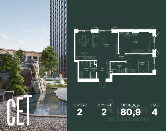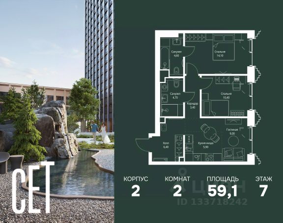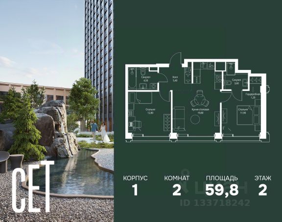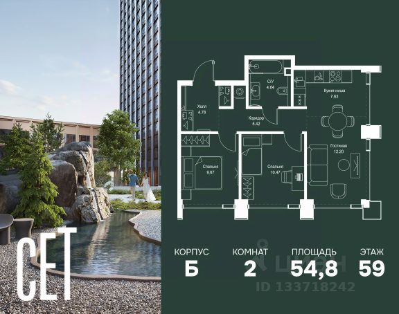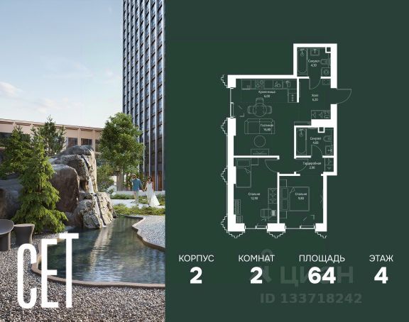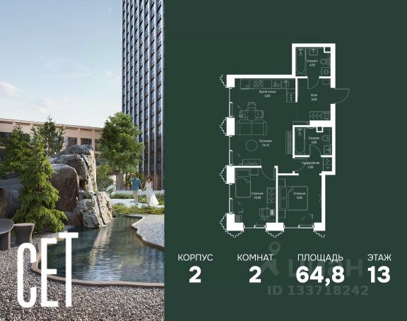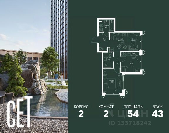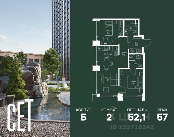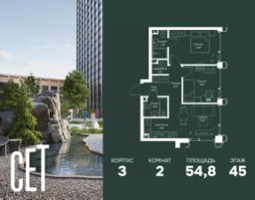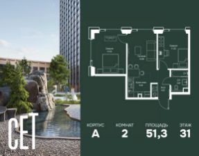 Прямая продажа от застройщика. В ЖК Сет продается 2-комнатная квартира площадью 51.28 м², расположенная в корпусе А, на 31 этаже 52 этажного дома. Сет имеет стратегически выгодное расположение в ЗАО, в районе с большой историей и блестящим будущим: между природной зоной долины реки Сетунь и Кутузовским проспектом. В рамках возведения первой очереди предусмотрено три корпуса высотой 18, 45 и 59 этажей. На верхних этажах спроектированы общедоступные смотровые площадки с панорамным обзором на центр столицы. Преимущества проекта: • Функциональные планировочные решения • Контроль проникновения через входную дверь • Система управления освещением и температурой в квартире • Система защиты от протечек с функцией перекрытия воды • Вход в подъезд по биометрическим считывателям Face ID • Скоростные лифты • Двухуровневый подземный охраняемый паркинг на 495 машино-мест Застройка Сет включает в себя не только жилые корпуса, но и инфраструктурные объекты. Все необходимое для повседневного комфорта будет расположено в шаговой доступности: • Фитнес-Клуб с бассейном • Ведущая городская школа, детский сад и школа искусств • Центр культуры и досуга • Медицинский центр • Кафе и рестораны Расположение комплекса: Пешком: • Метро "Давыдково" - 17 минут • Парк "Долина реки Сетунь" - 3 минуты • Открытие новых станций метро в шаговой доступности в будущем Инфраструктура: Разнообразить свой день резиденты Веер смогут также проводя больше времени на свежем воздухе. Двор разделен на 4 зоны разных эмоций и действий, которые пересечены и соединены веерными прогулочными маршрутами: • Спортивная площадка устроена в глубине ""Кленовой рощи"" • В ""Чайном домике"" будет создан навес с утеплением для отдыха в любую погоду • Площадки для детей воплотятся в ""Волшебный лес"" с цветами, зеркалами и световым дизайном • ""Центральная площадь"" устроена у водного оазиса живописного пруда. На машине: • "Москва-Сити" - 15 минут • Садовое кольцо - 20 минут • ТЦ "Океания" - 8 минут • ТЦ "Времена года" - 13 минут • Сколково - 12 минут • Гребной канал - 17 минут Компания MR предлагает своим клиентам специальные условия приобретения квартир в рамках программ ипотечного кредитования от банков-партнеров. Купить 2-комнатную квартиру с отделкой от застройщика в районе Можайский в Москве.