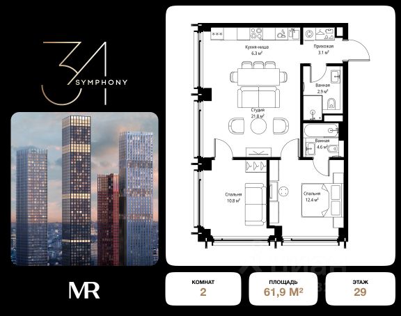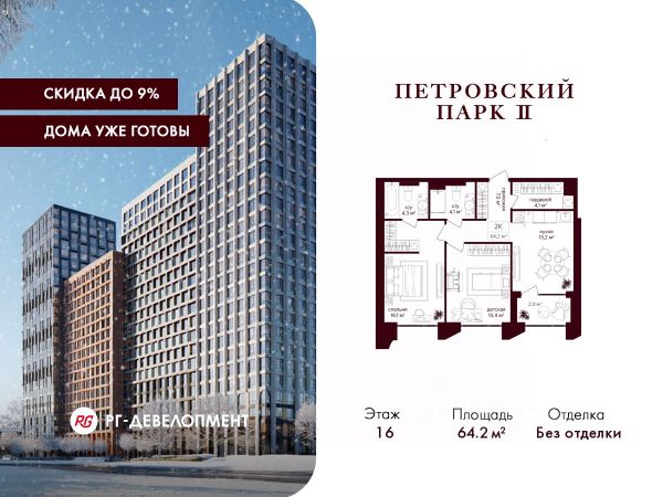 Дом сдан. Ключи в день покупки! В продаже 2-комнатная квартира площадью 67.40 м² с предчистовой отделкой на 5 этаже 43 этажного дома в корпусе Сильвер. ЖК Симфония 34 - концептуально новый жилой комплекс премиум-класса с подземной парковкой, состоит из четырех башен высотой 36 - 54 этажа. Квартиры сдаются с базовой (предчистовой) отделкой MR BASE или дизайнерской чистовой отделкой MR READY. Высота потолков 3 - 6 метров, окна высотой до 2,6 м. Более 100 кладовых в подземной части ЖК и более 500 на этажах. Безопасность - Система контроля входа на территорию комплекса, биометрия - Система автоматического водяного пожаротушения и противопожарного водопровода, система пожарной вентиляции - Доступ на парковку при помощи системы распознавания автомобильных номеров, карточка для контроля доступа резидентов - Система видеонаблюдения - Круглосуточная связь через приложение, телефон, голосовые сообщения с охраной, консьержем, call-центр. Расположение Пешком - 6 минут до метро "Дмитровская" - 15 минут до Тимирязевского парка На машине - 5 минут до Савеловского вокзала и Аэроэкспресса в Шереметьево - 10 минут до Москва-Сити и Садового кольца Благоустройство - 70% территории отведены под зеленые насаждения и ландшафтный дизайн - Приватный Японский сад - Детские площадки с зонированием по возрасту - Clubhouse для резидентов - Wellness & SPA - Зона для пикника, зона с гамаками - Центральное лобби, ресторан, коммерческие помещения - Дополнительный вход/выход на территорию комплекса Окружение - В 10 минутах от Symphony 34 находится дизайн-завод Flacon, где регулярно проходят культурно-образовательные и развлекательные мероприятия - Тимирязевский парк расположен в 850 м. Площадь парка 232 га - Рядом расположен парк "Дубки", площадью 16,5 га. - В 15 минутах расположен Хлебозавод 9. Здесь находятся шоурумы брендов, кафе разных кухонь мира, образовательные проекты и площадки для мероприятиКомпания MR предлагает своим клиентам специальные условия приобретения квартир в рамках программ ипотечного кредитования от банков-партнеров. Продается 2-комнатная квартира с отделкой от застройщика в районе Савеловский в Москве.