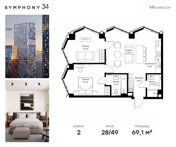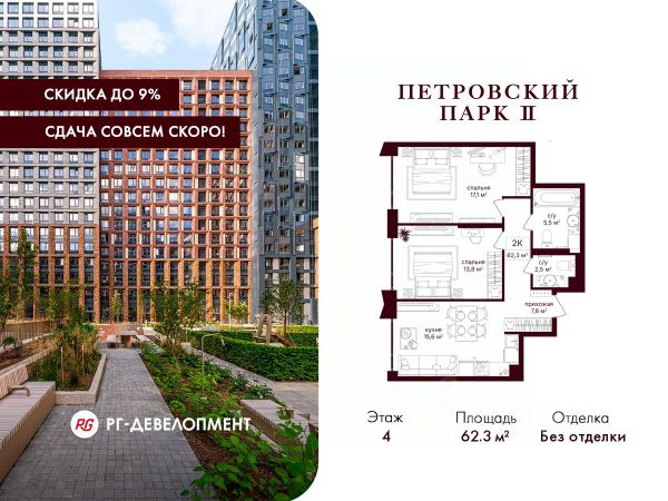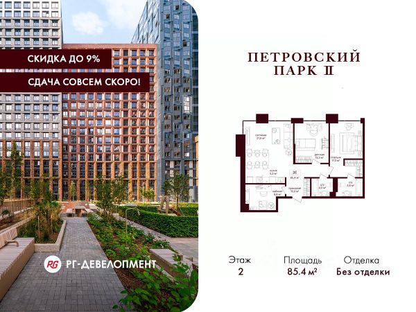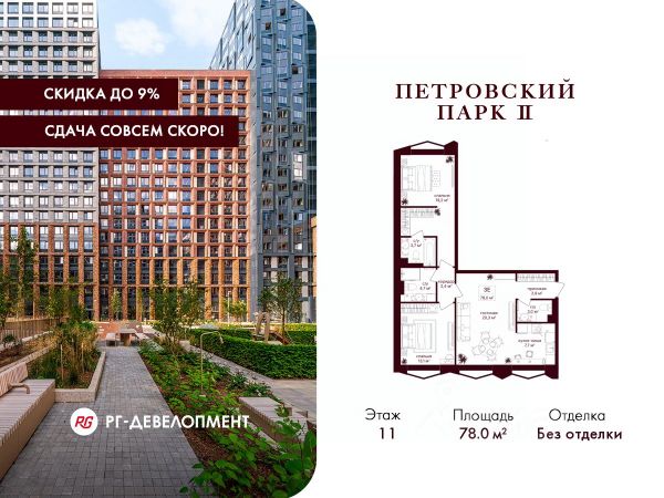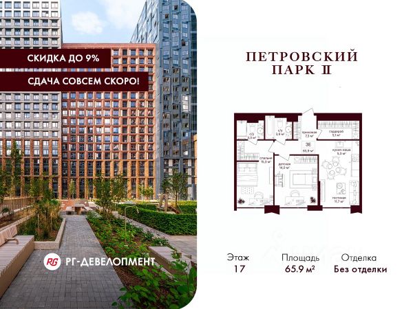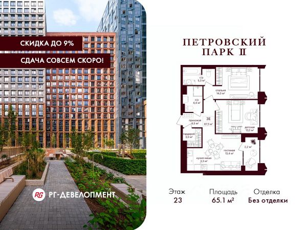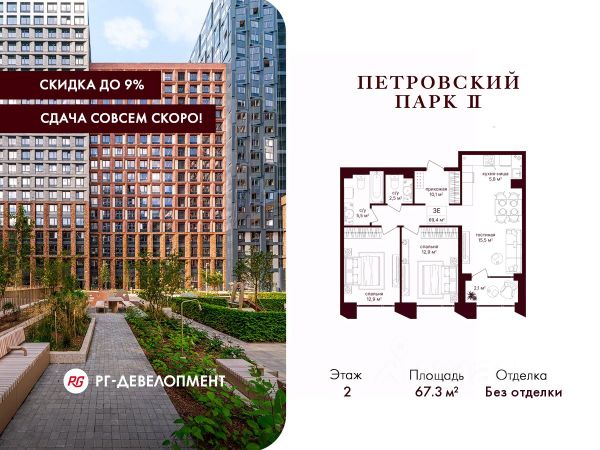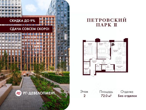 Продаётся 2-комнатная квартира 72,5 кв.м. в ЖК "Петровский парк II" на 2-м этаже 21 этажного дома. Скидка 9% при покупке квартиры! Цена указана с учетом максимального размера скидки. Компания "РГ-Девелопмент" предоставляет скидки на квартиры в жилом комплексе. Акция действительна с 01.10.2025 до 31.10.2025 включительно. Для того чтобы воспользоваться предложением, необходимо подписать договор на приобретение недвижимости до 30.09.25г., включительно. ЖК "Петровский парк II" расположен в историческом районе Москвы, в 5 минутах от парка и станции метро "Динамо". Архитектуру от Syntaxis характеризуют асимметричные фасады, геометрические выступы, напоминающие волны. Эстетика архитектурных форм продолжается в интерьере внутренних пространств - двух центральных лобби и входных группах. На закрытой территории зеленые зоны с цветниками, места для отдыха, спортивные и игровые площадки. Подземная парковка, близость основных магистралей и удобные выезды, которые дают возможность жителям комплекса быть в центре культурной и общественной жизни. Комфортной жизни на территории комплекса расположены магазины, рестораны, частный детский сад. Продается 2-комнатная квартира с отделкой от застройщика в районе Савеловский в Москве.