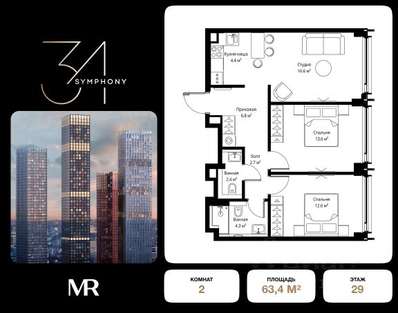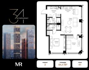 Дом сдан. Ключи в день покупки! В продаже 2-комнатная квартира площадью 63.40 м² с предчистовой отделкой на 29 этаже 54 этажного дома в корпусе Графит. ЖК Симфония 34 - концептуально новый жилой комплекс премиум-класса с подземной парковкой, состоит из четырех башен высотой 36 - 54 этажа. Квартиры сдаются с базовой (предчистовой) отделкой MR BASE или дизайнерской чистовой отделкой MR READY. Высота потолков 3 - 6 метров, окна высотой до 2,6 м. Более 100 кладовых в подземной части ЖК и более 500 на этажах. Безопасность - Система контроля входа на территорию комплекса, биометрия - Система автоматического водяного пожаротушения и противопожарного водопровода, система пожарной вентиляции - Доступ на парковку при помощи системы распознавания автомобильных номеров, карточка для контроля доступа резидентов - Система видеонаблюдения - Круглосуточная связь через приложение, телефон, голосовые сообщения с охраной, консьержем, call-центр. Расположение Пешком - 6 минут до метро "Дмитровская" - 15 минут до Тимирязевского парка На машине - 5 минут до Савеловского вокзала и Аэроэкспресса в Шереметьево - 10 минут до Москва-Сити и Садового кольца Благоустройство - 70% территории отведены под зеленые насаждения и ландшафтный дизайн - Приватный Японский сад - Детские площадки с зонированием по возрасту - Clubhouse для резидентов - Wellness & SPA - Зона для пикника, зона с гамаками - Центральное лобби, ресторан, коммерческие помещения - Дополнительный вход/выход на территорию комплекса Окружение - В 10 минутах от Symphony 34 находится дизайн-завод Flacon, где регулярно проходят культурно-образовательные и развлекательные мероприятия - Тимирязевский парк расположен в 850 м. Площадь парка 232 га - Рядом расположен парк "Дубки", площадью 16,5 га. - В 15 минутах расположен Хлебозавод 9. Здесь находятся шоурумы брендов, кафе разных кухонь мира, образовательные проекты и площадки для мероприятиКомпания MR предлагает своим клиентам специальные условия приобретения квартир в рамках программ ипотечного кредитования от банков-партнеров. Продается 2-комнатная квартира с отделкой от застройщика в районе Савеловский в Москве.